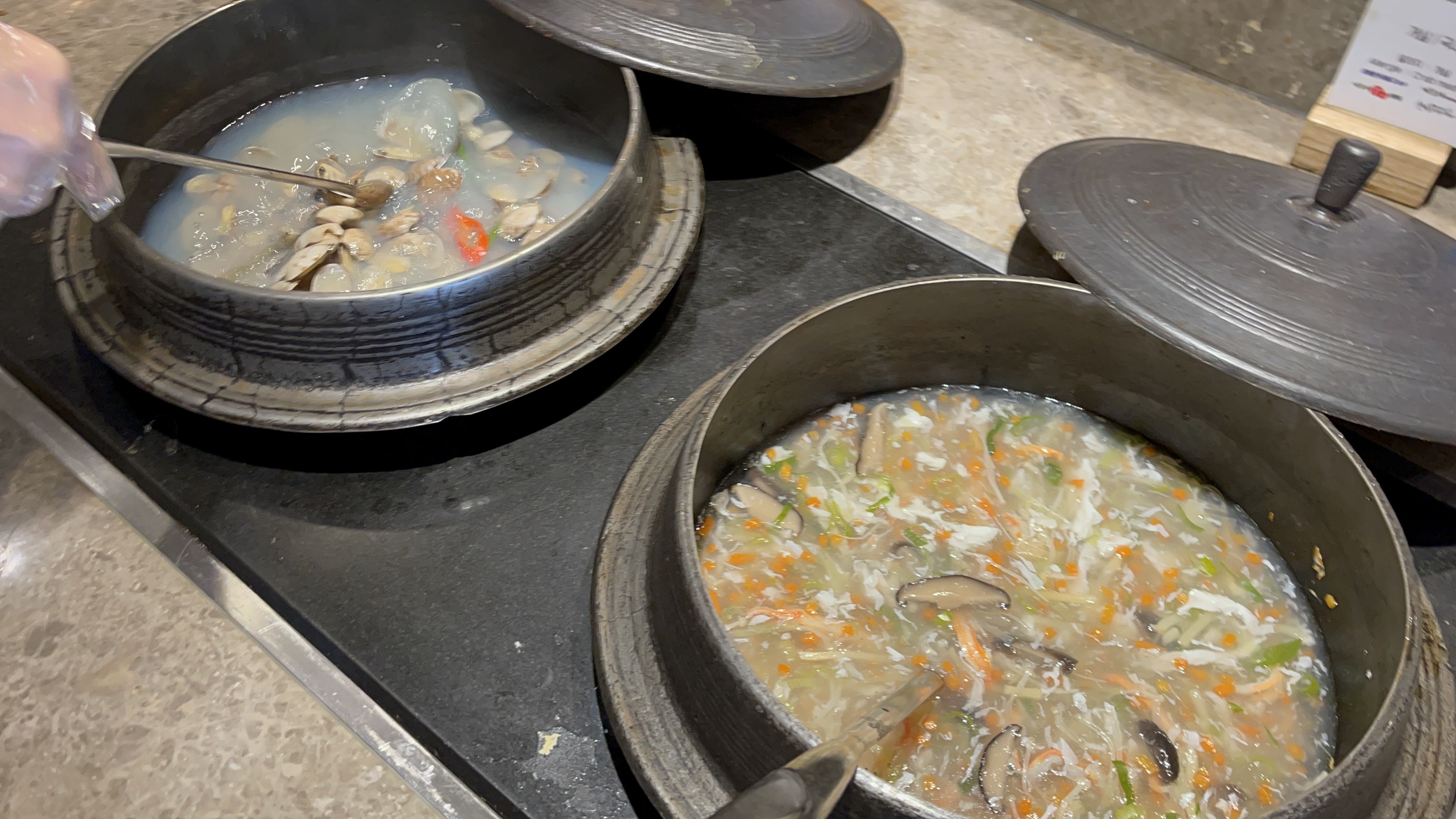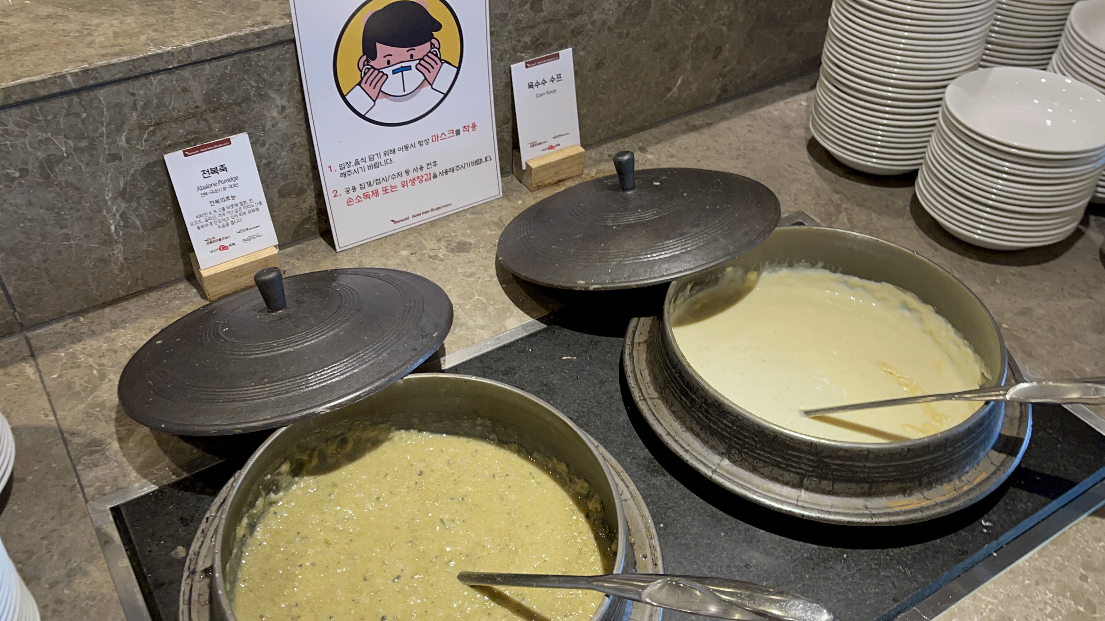 바지락탕과 게살스프, 전복죽과 옥수수스프 등은