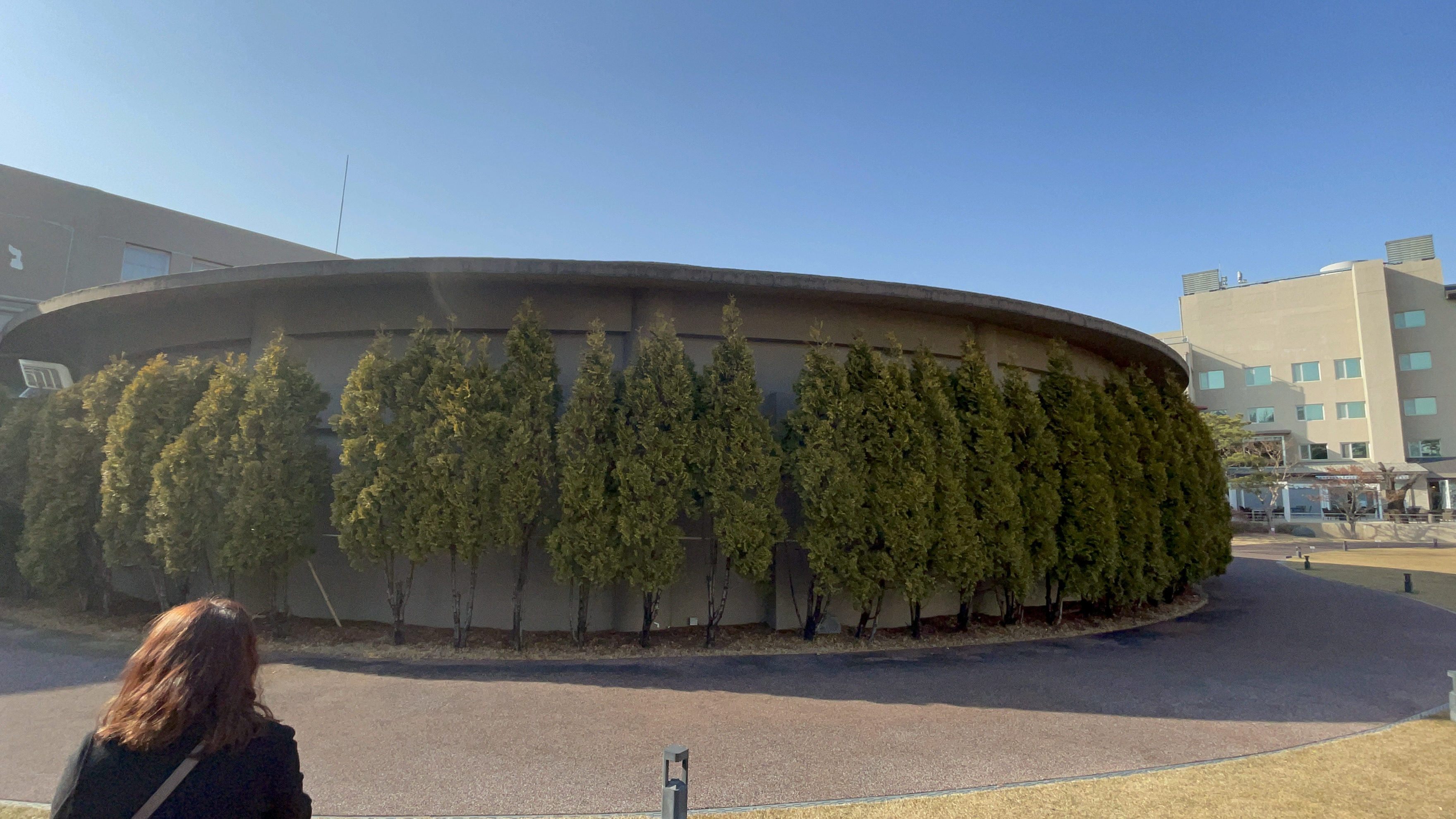 나무들도 둘러싸여진 원형건물...