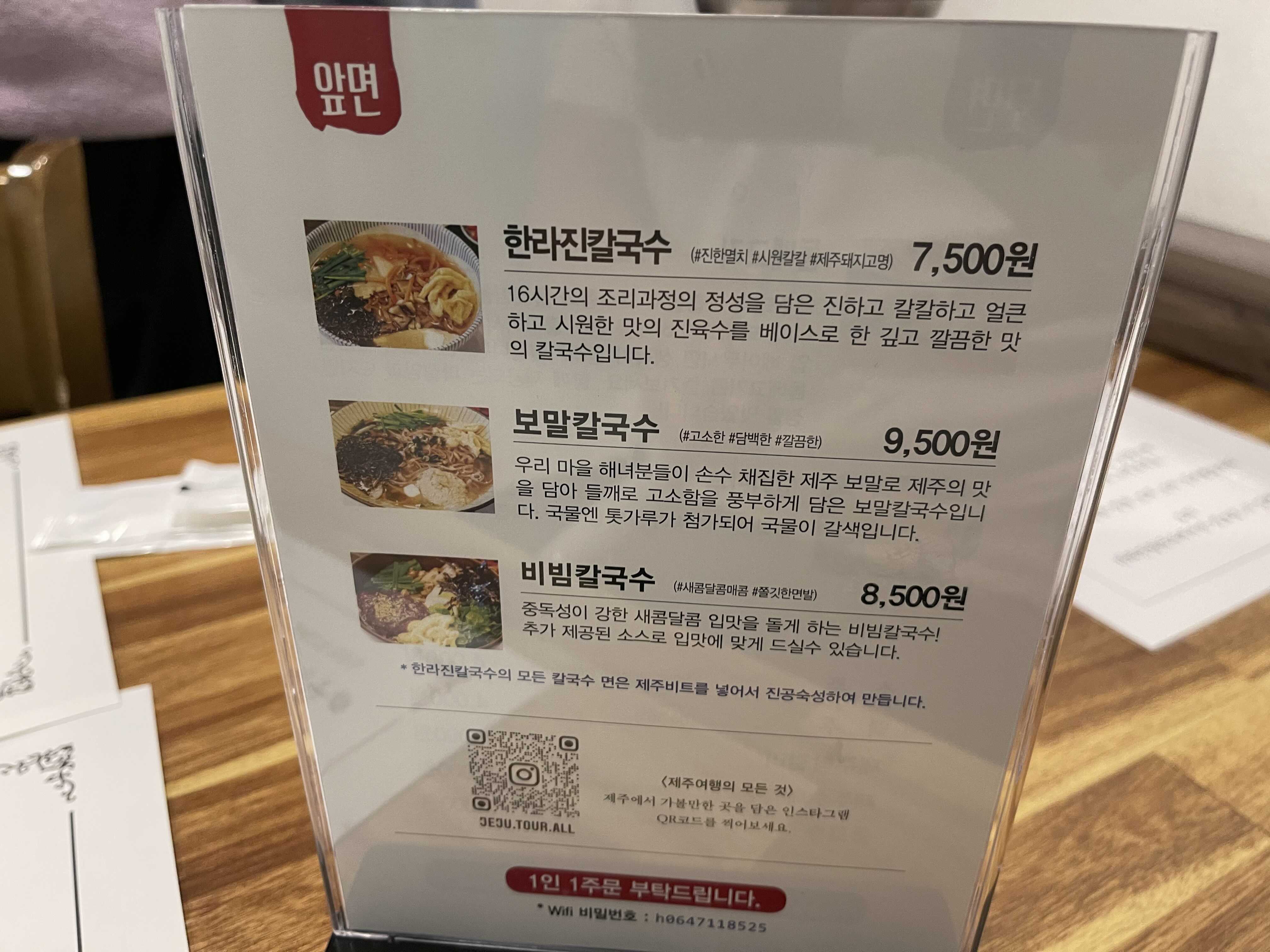 칼국수 종류는 이렇다. 우리는 한라진칼국수와 라온이에게 먹일 수 있는 보말칼국수를 시켜본다.