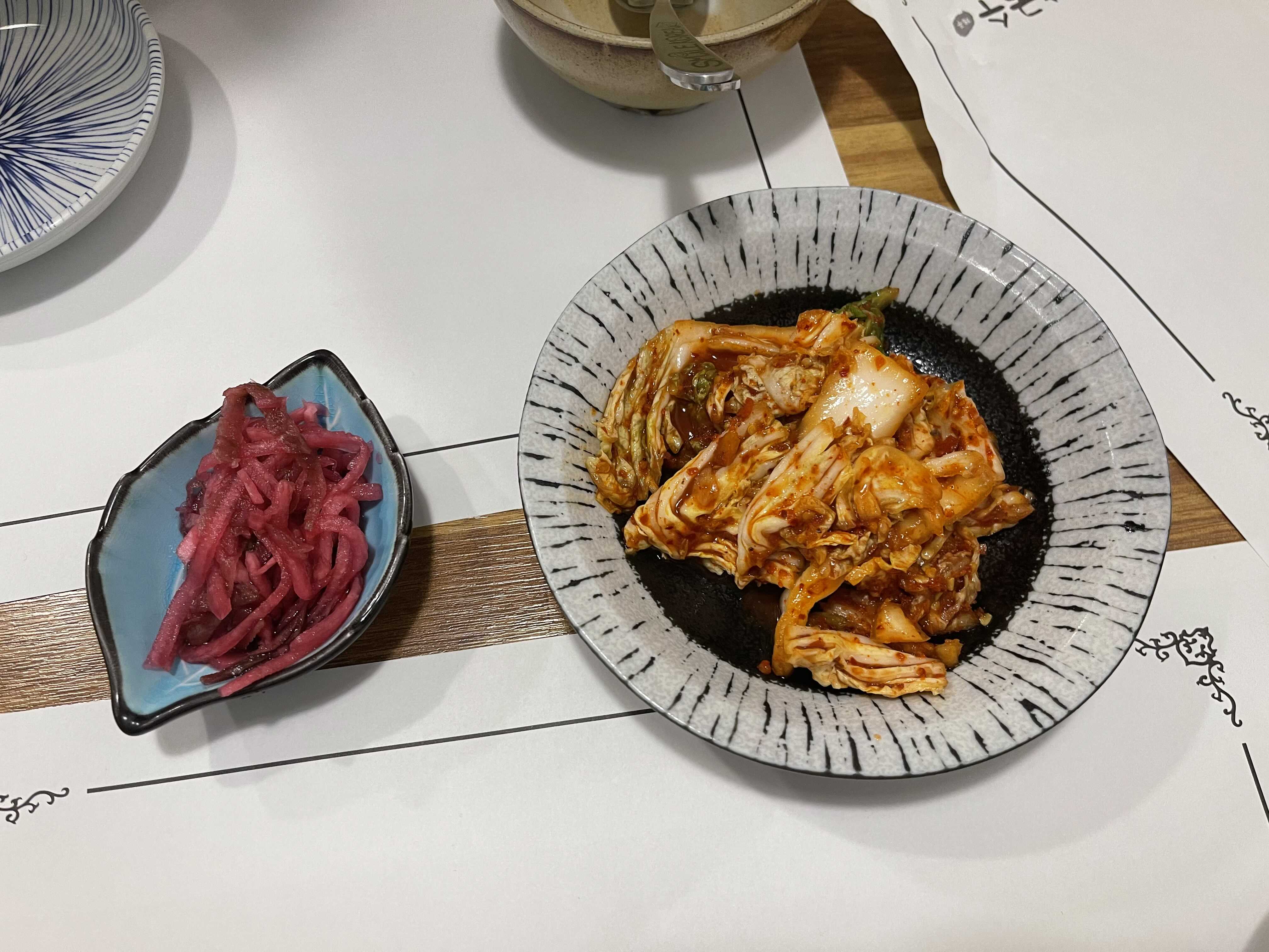 반찬은 조촐하게 겉절이와 드랍더비트무다. 처음엔 양배추김치인가했는데, 식감만 그런 배추김치다. 아주 맛있진않은데 칼국수와는 또 잘 어울리는 그런 맛이다.