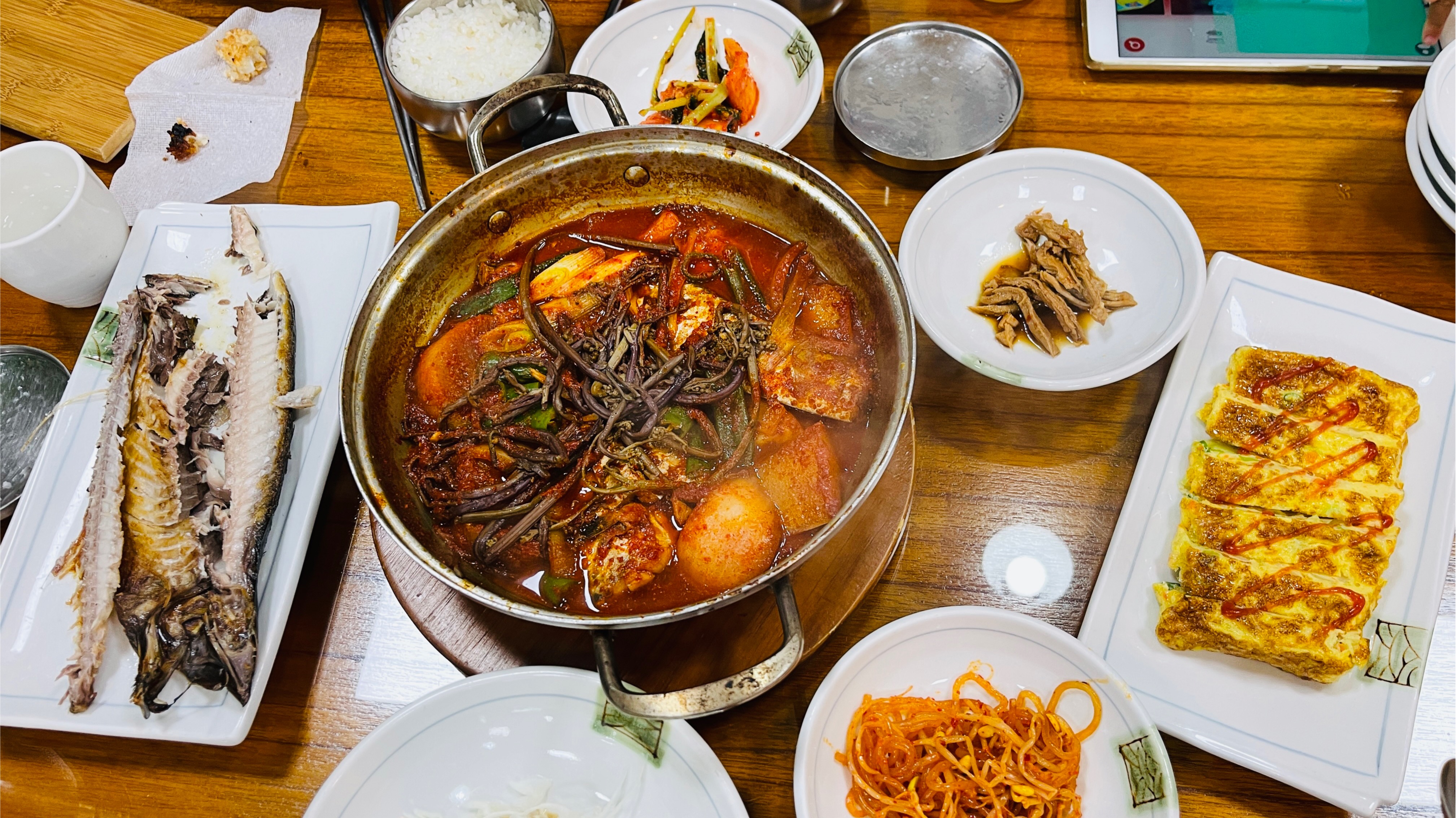 반찬은 그때 재료 사정에 맞게 약간씩 바뀌고 있다.
