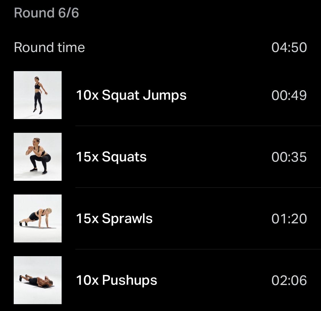 하지만 5라운드에선 다시 부분적으로 체력저하로 인한 기록 부진.. 스프롤이 체력을 한계까지 몰아부치는 느낌이다. 그래서 푸쉬업할때도 다리에 힘이 제대로 안들어간다..