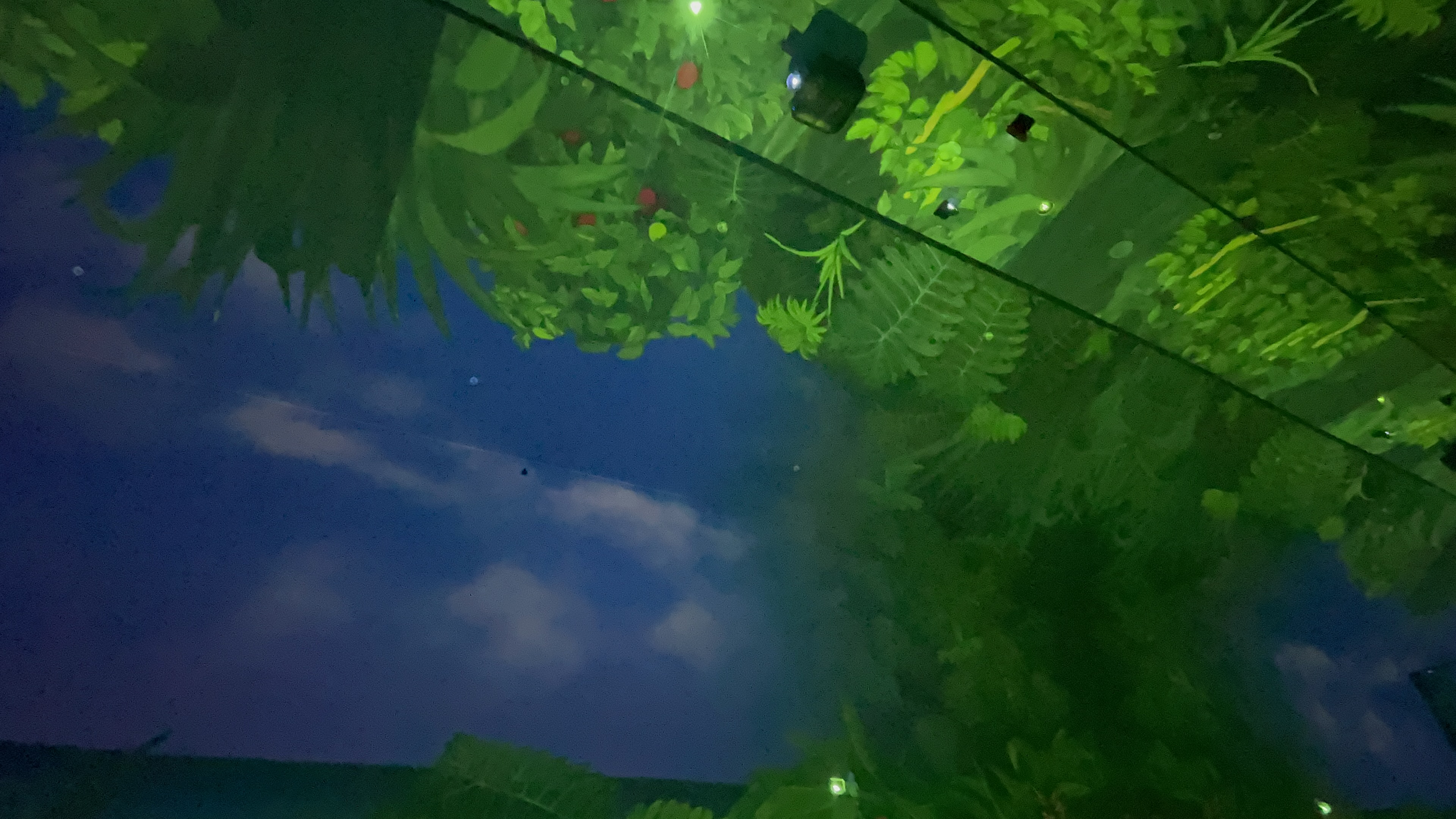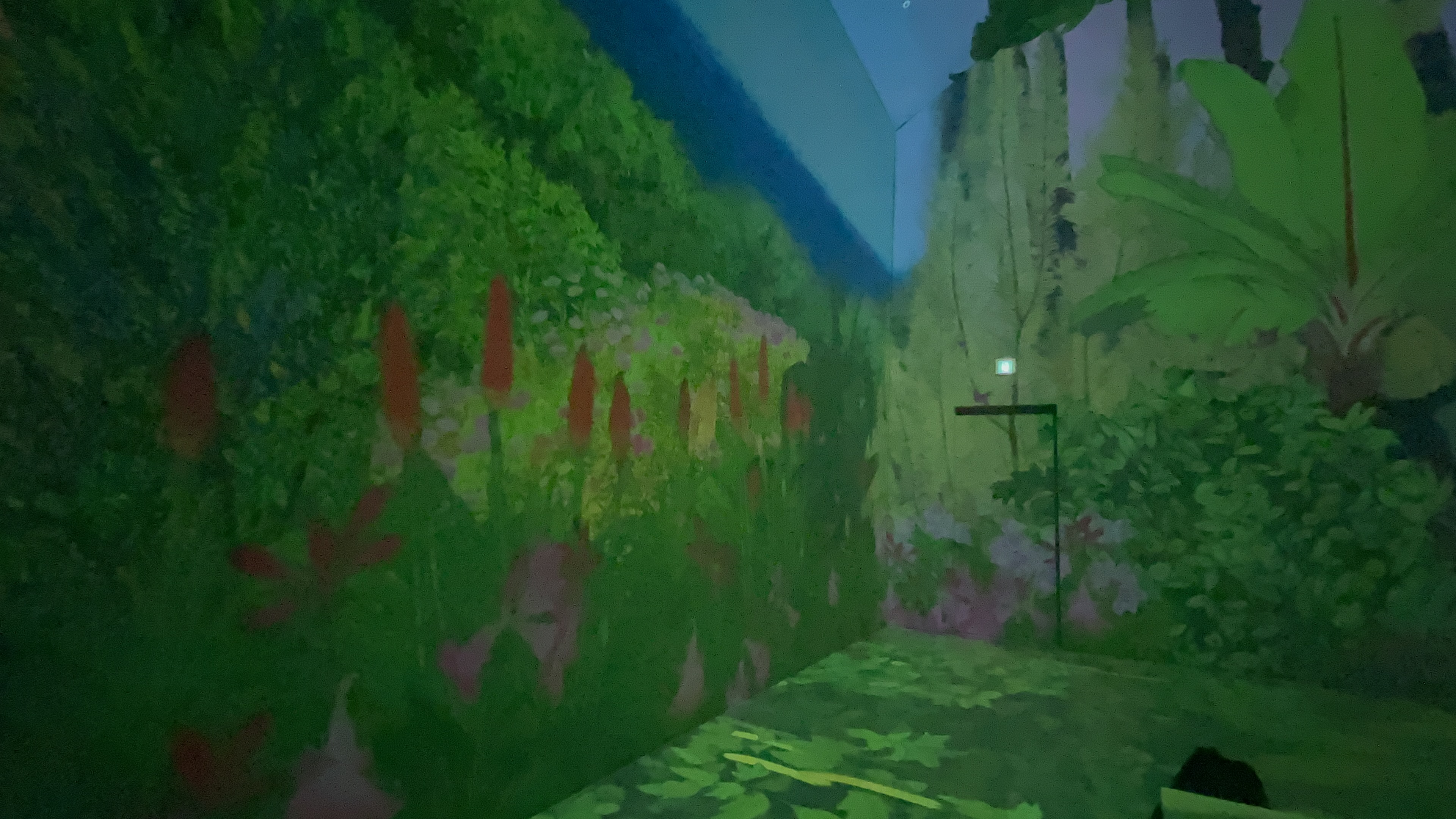 본 영상이 시작되기 전 테스트 영상이 시연되는데, 사람의 움직임에 따라 바닥에 물방울이 따라다닌다.