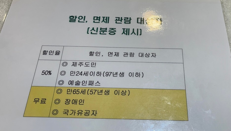 할인대상자는 미술관 관람권을 제시하면 된다. 도민은 1,000원에 입장가능. 할인을 받지 않아도 너무 저렴한 가격.