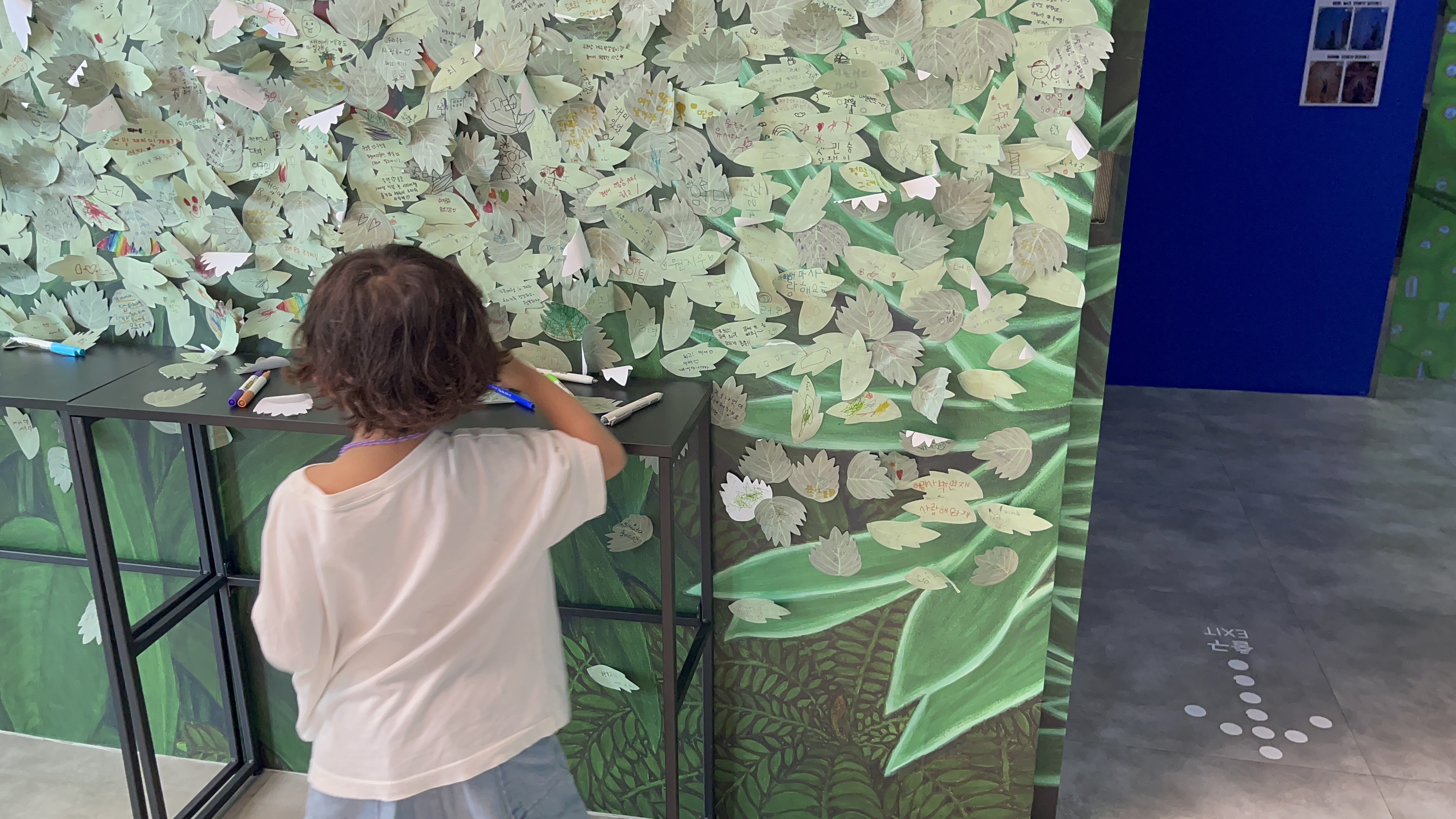 출입구엔 방문한 사람들의 흔적을 남길 수 있는 나뭇잎 방명록이 붙어져있다.