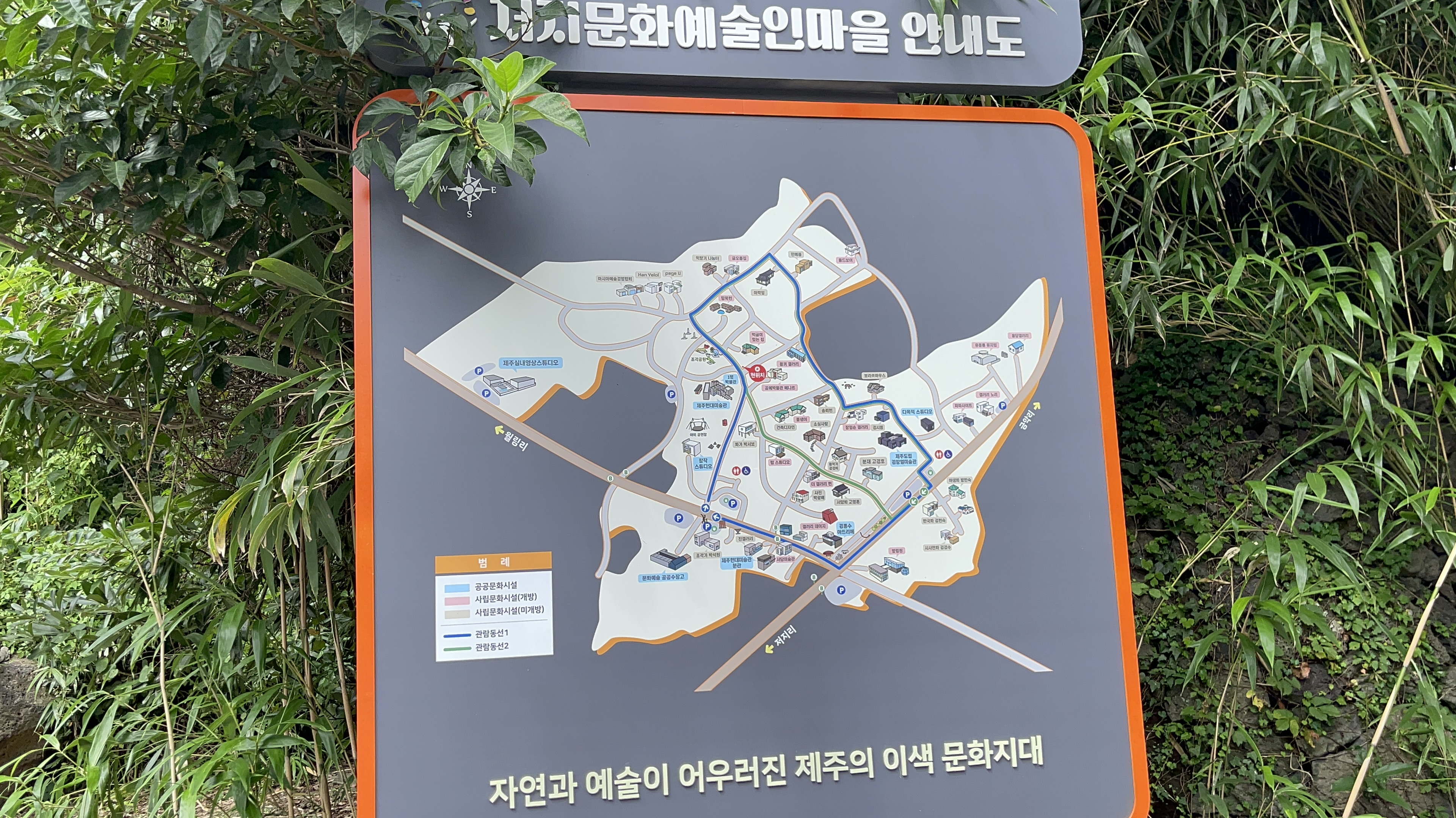 본관을 나서서 주변을 조금 더 걸어보고자 저지문화예술인마을 안내도도 보았지만 너무 무더워진 날씨와 미술작품 그 이상의 흥미를 더 갖지 못했던 아이의 관심이 떨어진 관계로 공공수장관의 미디어아트를 보는 것으로 다음 일정을 진행해야 했다.
