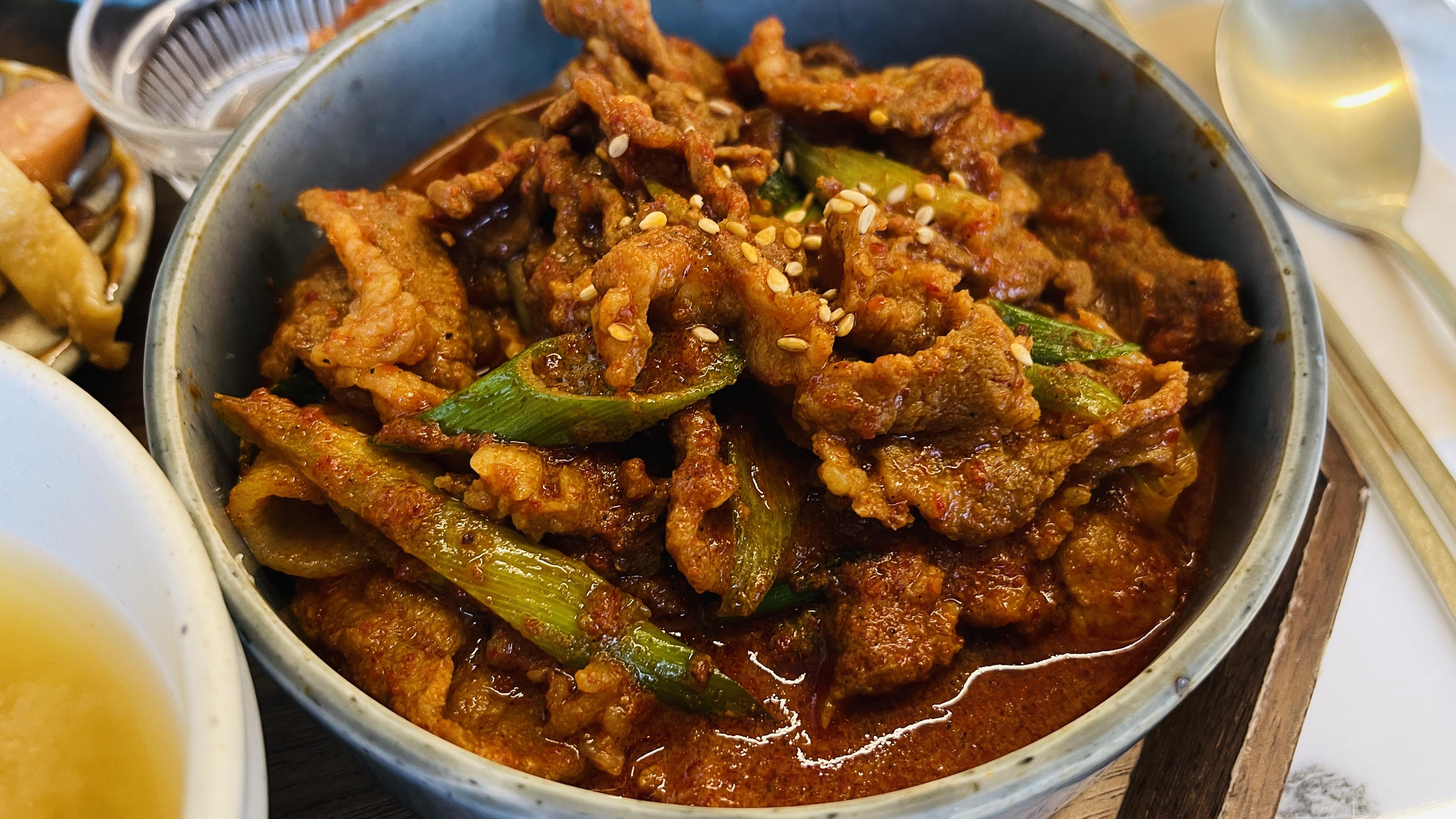 예전에 궁채나물을 처음 먹어보고, 오독오독 소리나는 식감이 너무 괜찮아서 기억에 남았는데 여기서 또 먹어볼 수 있어서 좋았다. 직원들도 색다른 식감에 꽤나 만족한 눈치다. 반찬들도 집반찬처럼 정갈하고 메인과 잘 어울리는 쌈과 장아찌는 밥이 꿀떡꿀떡 넘어가게 만들어준다.