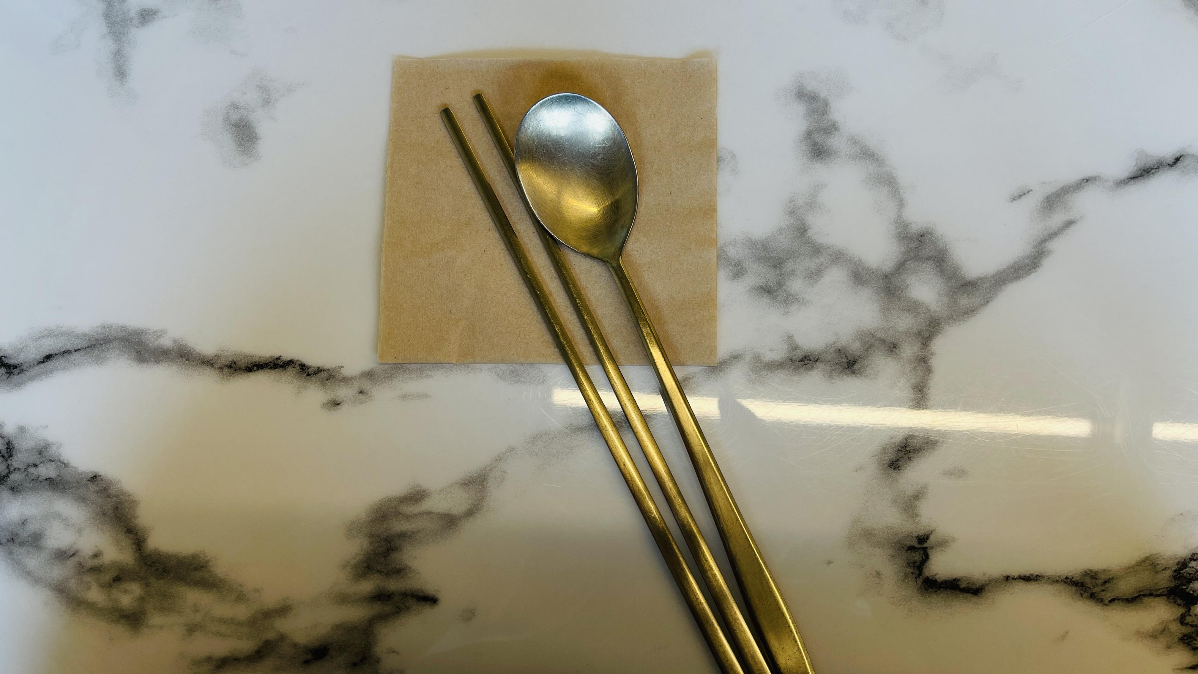 카페같은 공간에 놋으로 된 수저세트가 이색적이다.