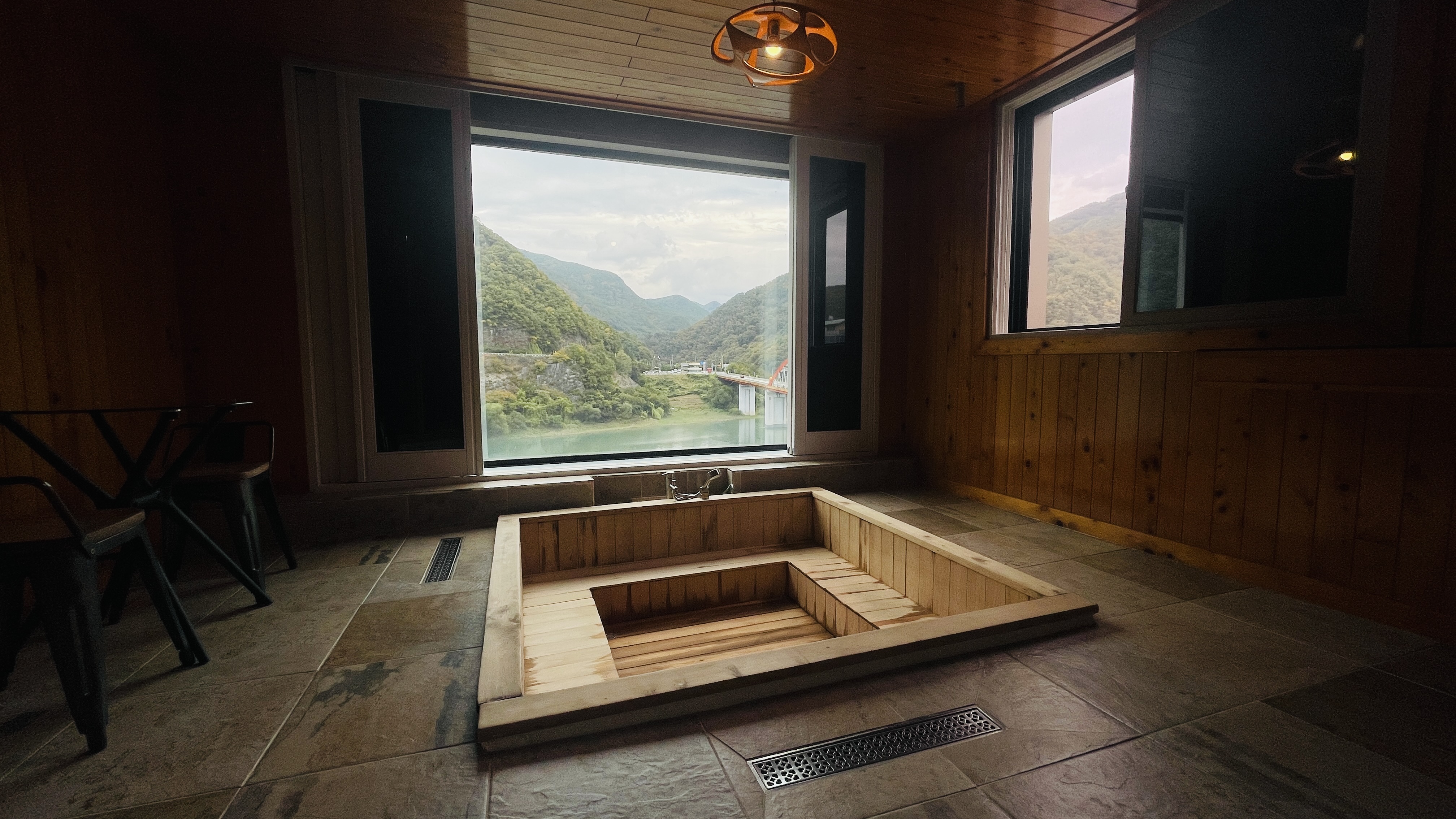 히노끼탕이 이렇게 준비되어 있다는 것! 물론, VIP룸에 한한 옵션이지만 낮에는 남한강과 마운틴 뷰를 볼 수 있고 밤에도 고수대교의 야경을 벗삼아 히노끼탕을 즐길 수 있어서 좋다. VIP룸은 10~12만원 정도 고가이긴 하지만 특급호텔이 많지 않은 단양에서 이정도 퀄리티에 이정도 가격이면 나름 괜찮지 않을까 싶다.