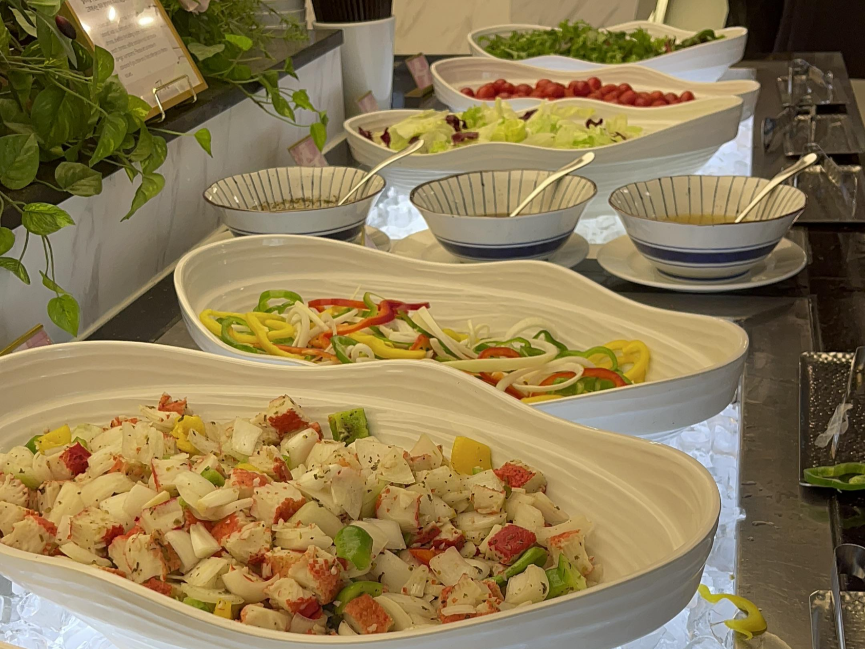 채소나 파프리카 게맛살 샐러드가 준비되어 있지만 샐러드는 나와의 인연이 없는 곳이라 패스! 과일도 3종류인데