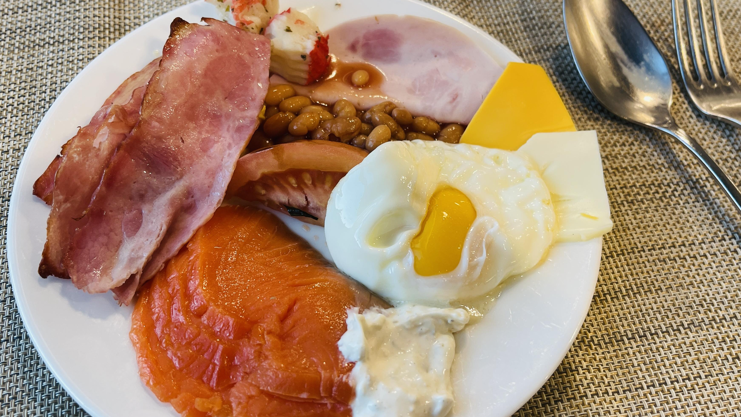 조식메뉴에 감자 출현은 처음인듯한데, 굳이 손이 가진 않았고 외국인들은 엄청 가져다 먹었다. 베이컨은 바삭하지 않고 촉촉해서 먹기 좋고 너무 짜지도 않아서 더 좋다.