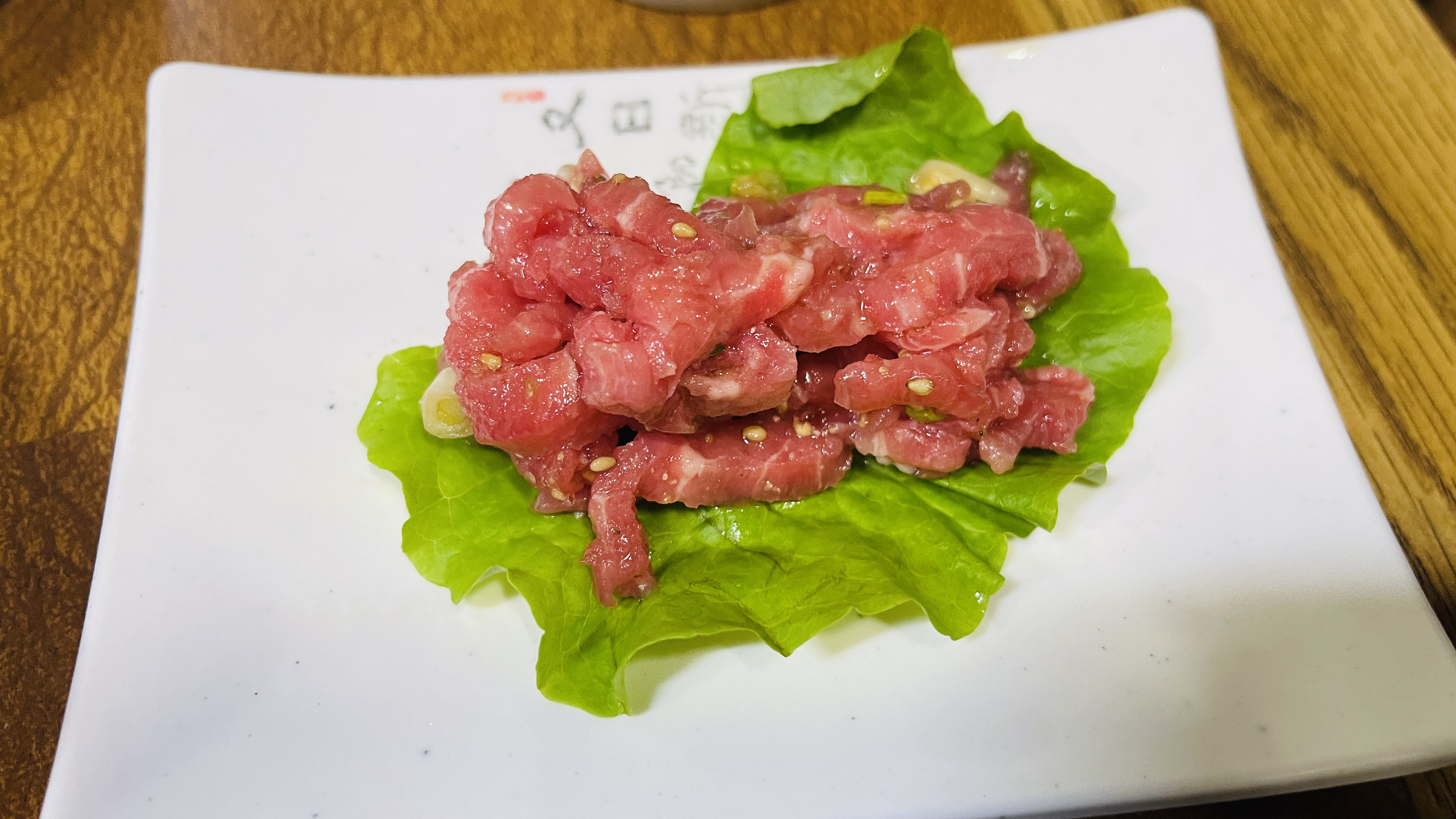 처음 방문했을 때만 해도 돼지고기 먹는데 육회를 서비스로 줘서 깜놀! 지금은 안주면 서운한 서비스가 되었다.
