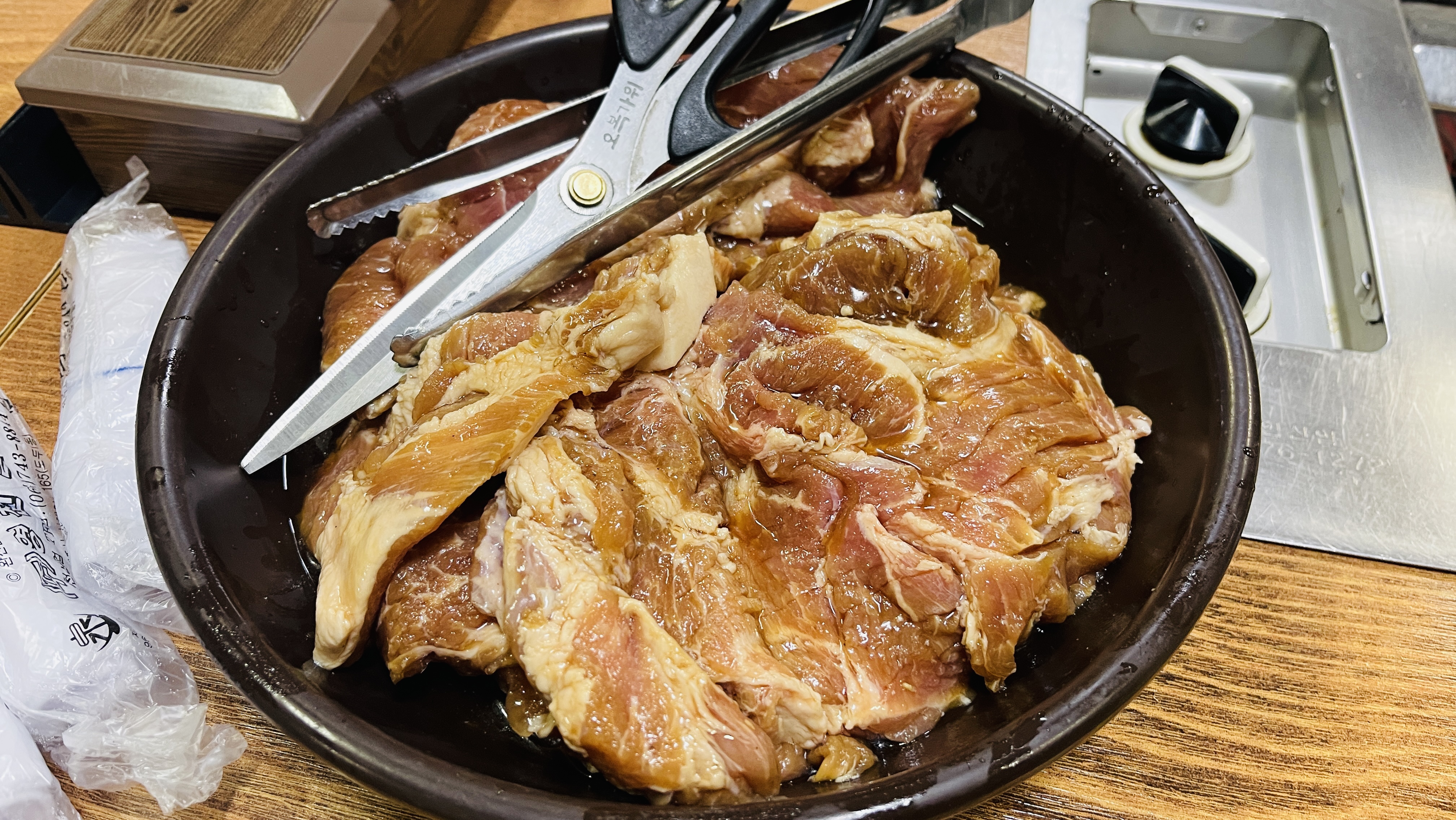 이집 가위가 참 마음에 든다. 함석가위마냥 고기가 싹둑싹둑! 고기가 잘 안잘리면 그것도 나름 짜증나는데, 이집은 그럴걱정이 없다.