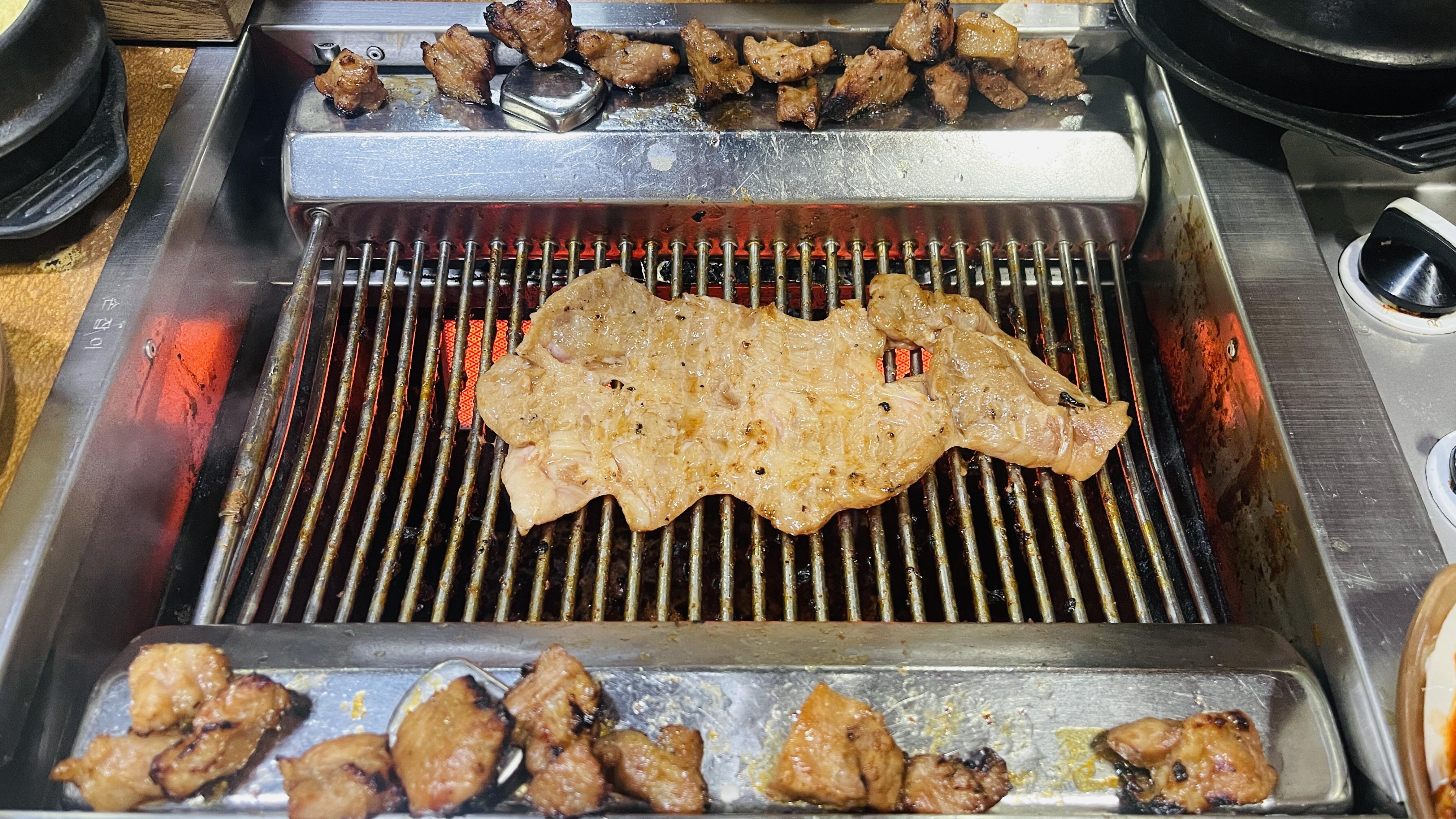 화력이 좋아 금방 익혀져서 더 좋다. 불판 위는 엄청 뜨겁기 때문에 고기 뒤집고 자를 때 조심해야 한다.