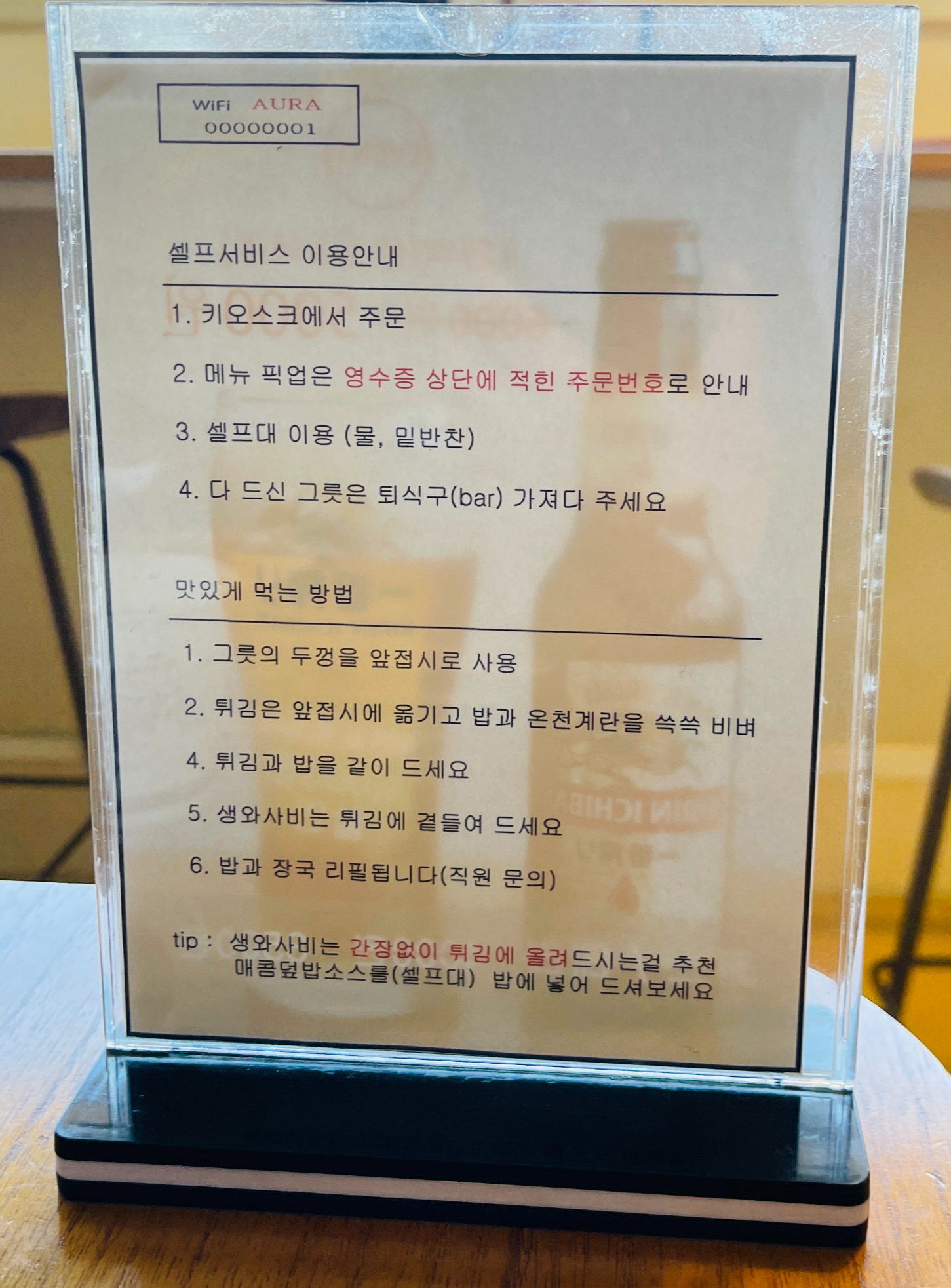 테이블 위엔 텐동 맛있게 먹는 방법이 적혀져 있다.