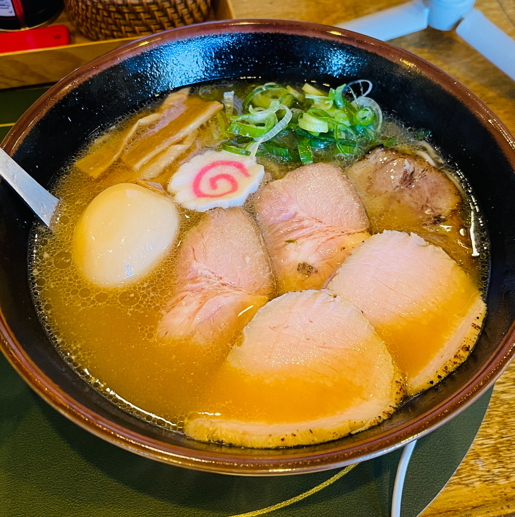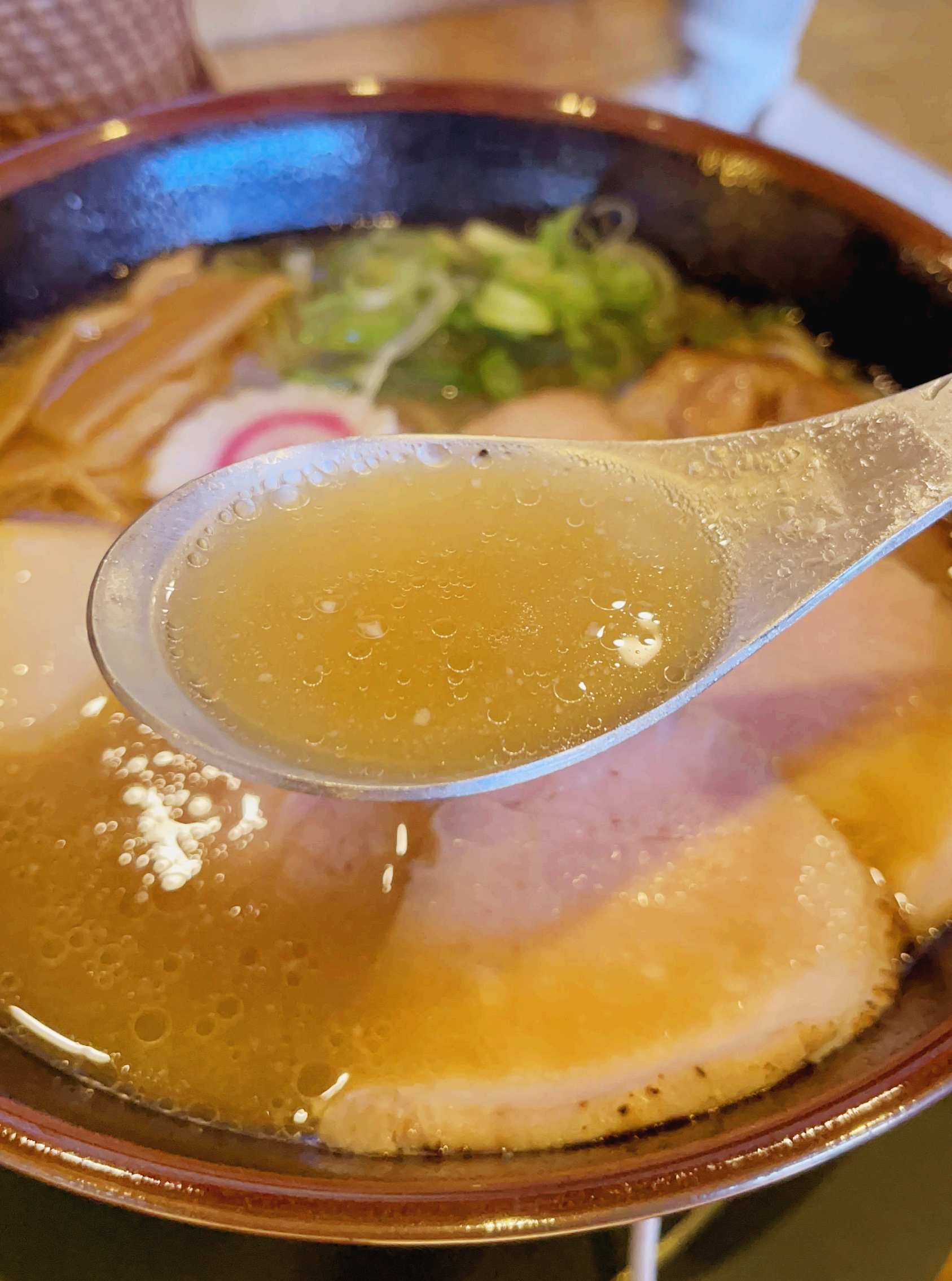 소유라멘 국물. 사진상으로는 기름방울이 둥둥 떠다녀서 느끼할 것 같지만, 느끼하지 않다. 소유의 간간함이 모든 느끼함을 제대로 잡아 주어 아주 맛있게 먹을 수 있는... 그냥 맛있는 맛이다!