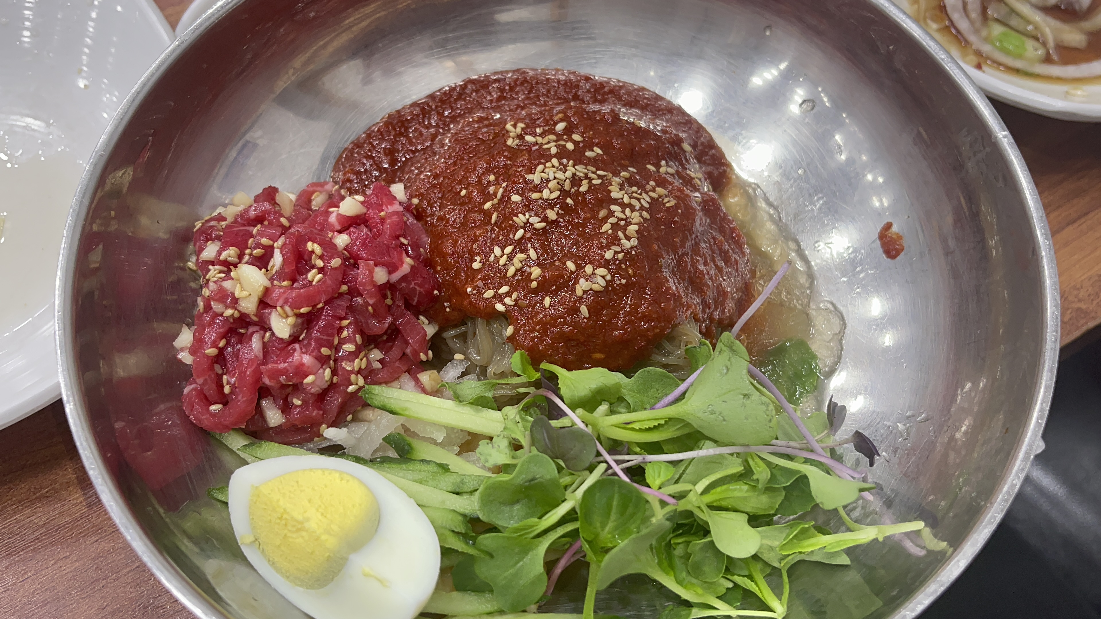 딱 내가 원하는 비빔냉면의 맛에 고소한 육회가 가미되어 훨씬 감칠맛이 살아있다.