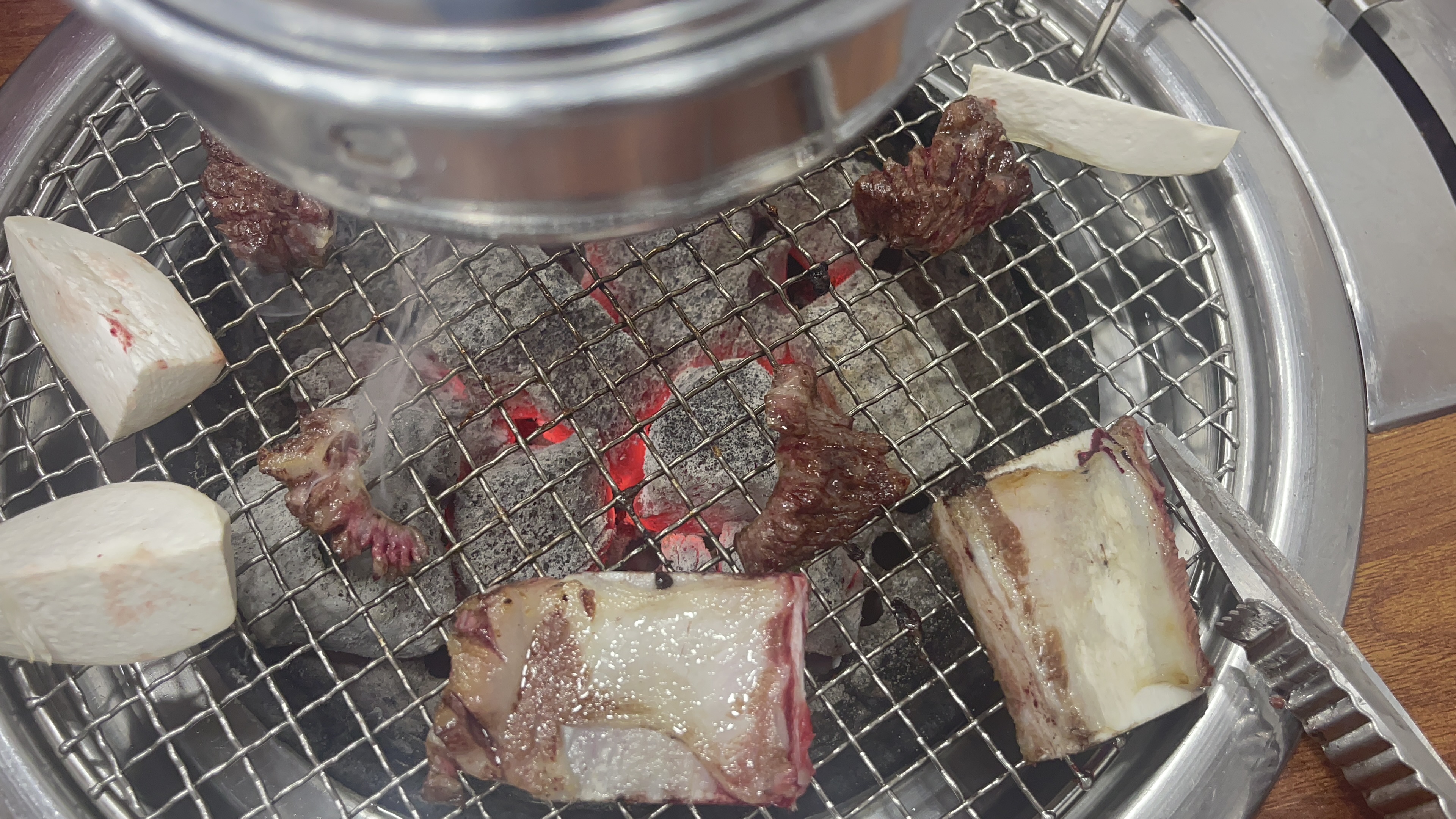 화력이 좋아서인지 순식간에 구워지는 생갈비. 얼른 뒤집어 줘야지.