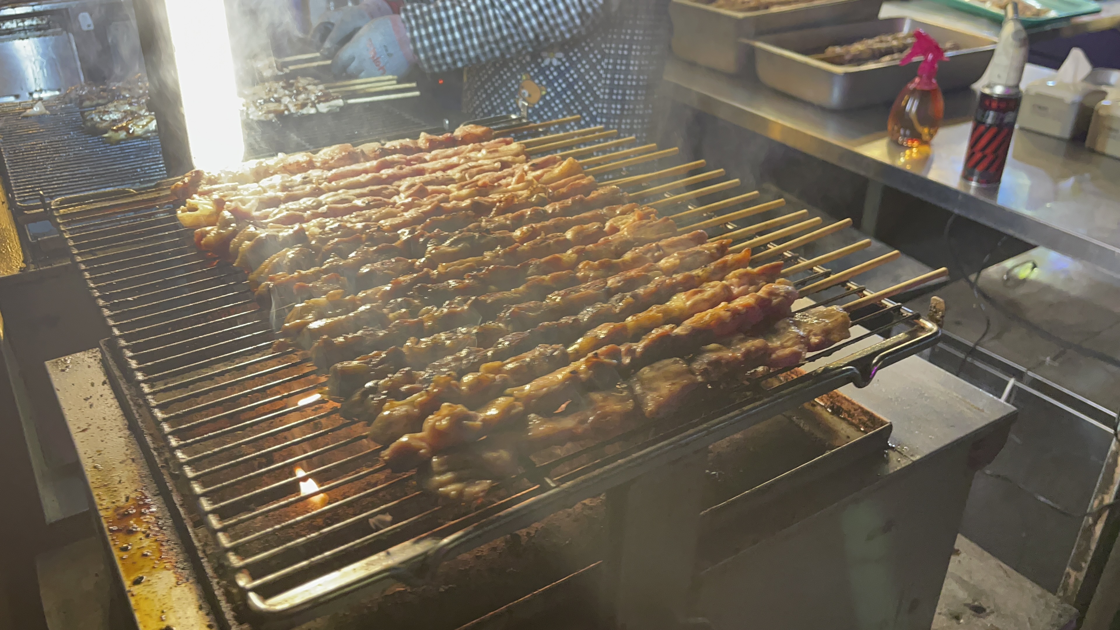 닭꼬치가 맛있게 구워지고 있다. 배고팠으면 한입하겠지만.. 오늘은 그냥 구경만 하는 걸로..