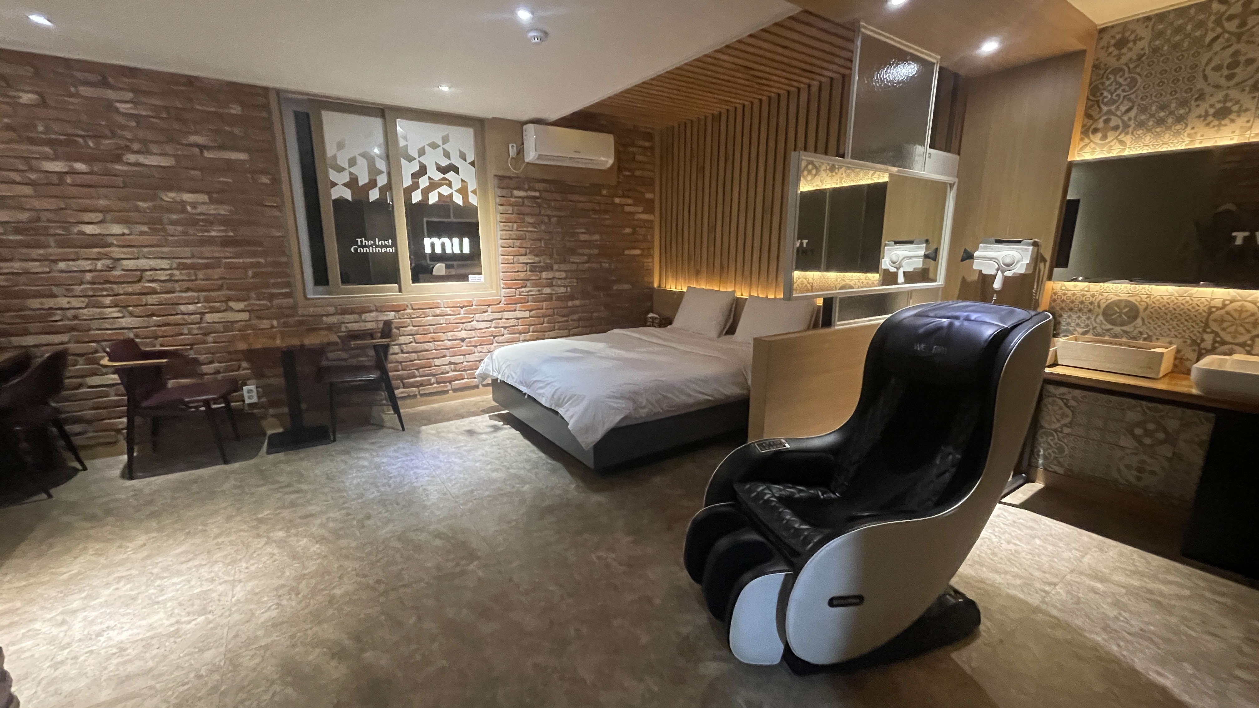 한쪽엔 파우더룸과 화장실. 그리고 좋아보이는 안마의자까지.