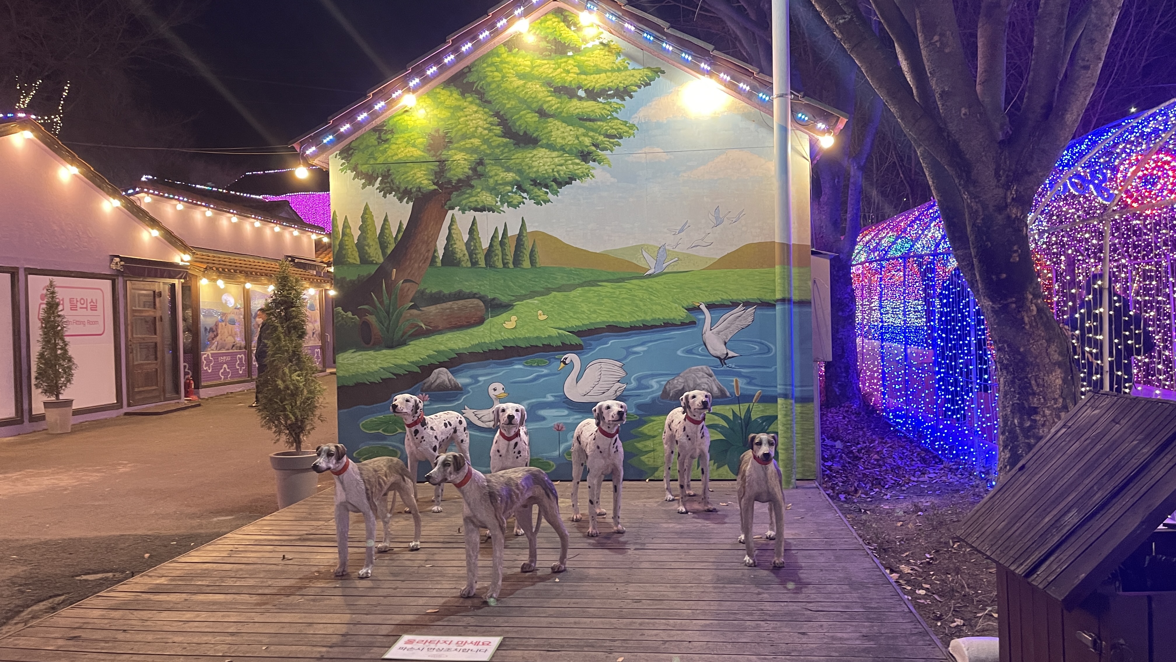 동물을 빛으로 장식해놓아서 아이들이 참 좋아할 것 같다.