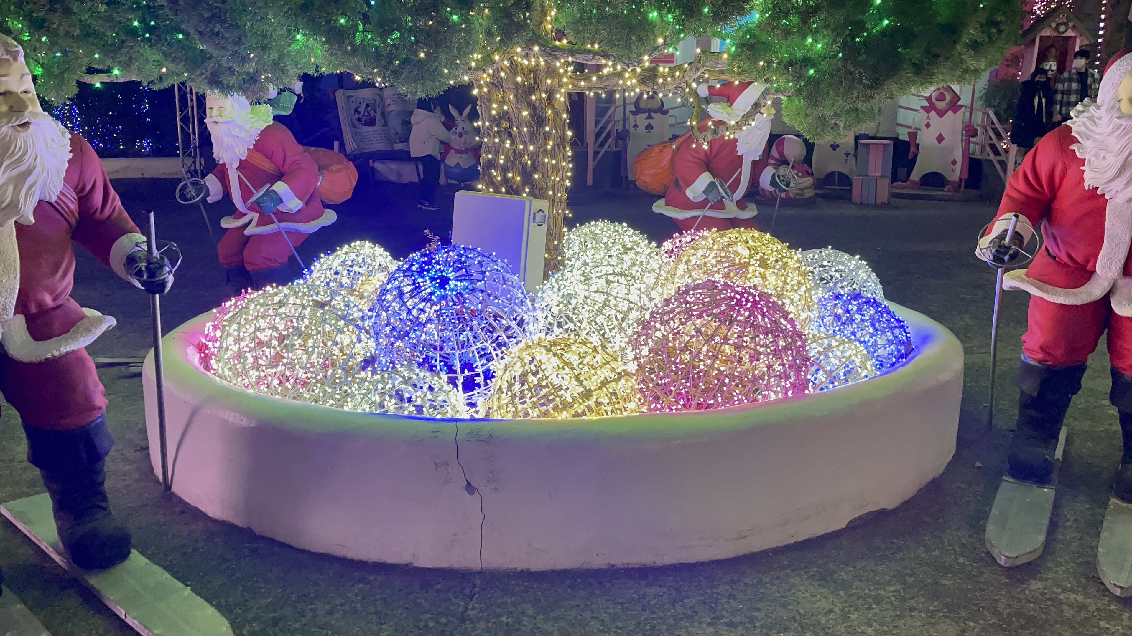 크리스마스 분위기가 한껏 날 수 있도록 가로수길에는 산타할아버지들도 줄지어 서있다.