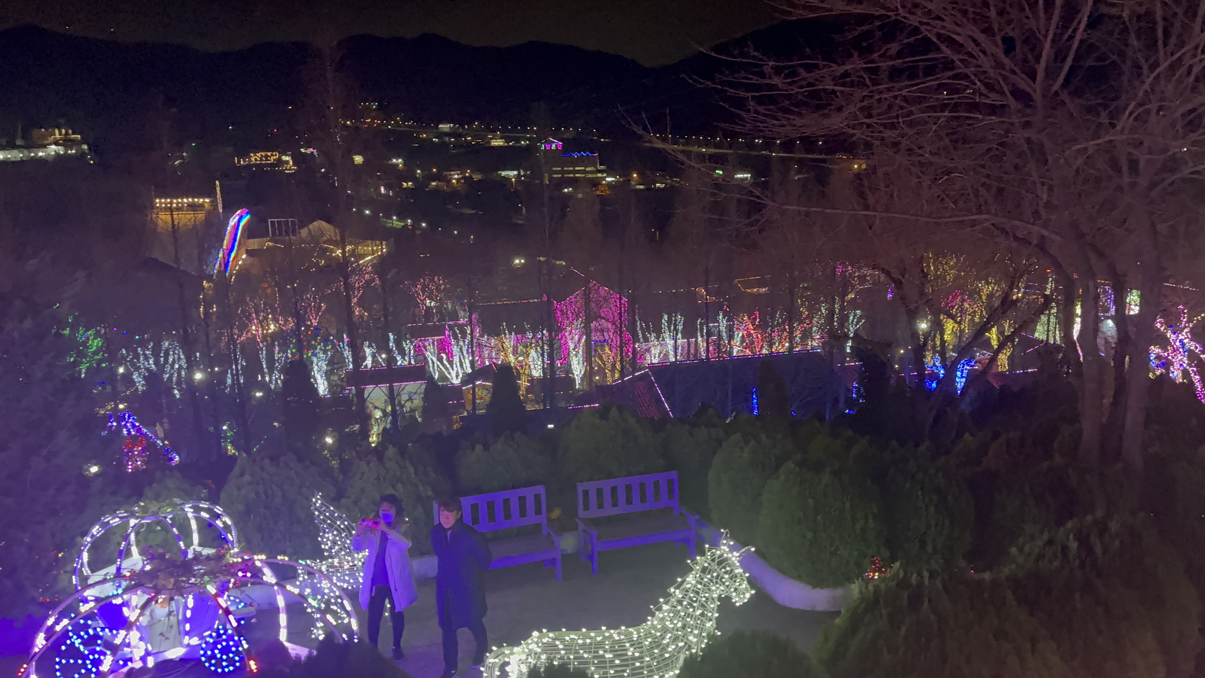 제일 꼭대기에서 내려다보는 프로방스 빛축제 전경.