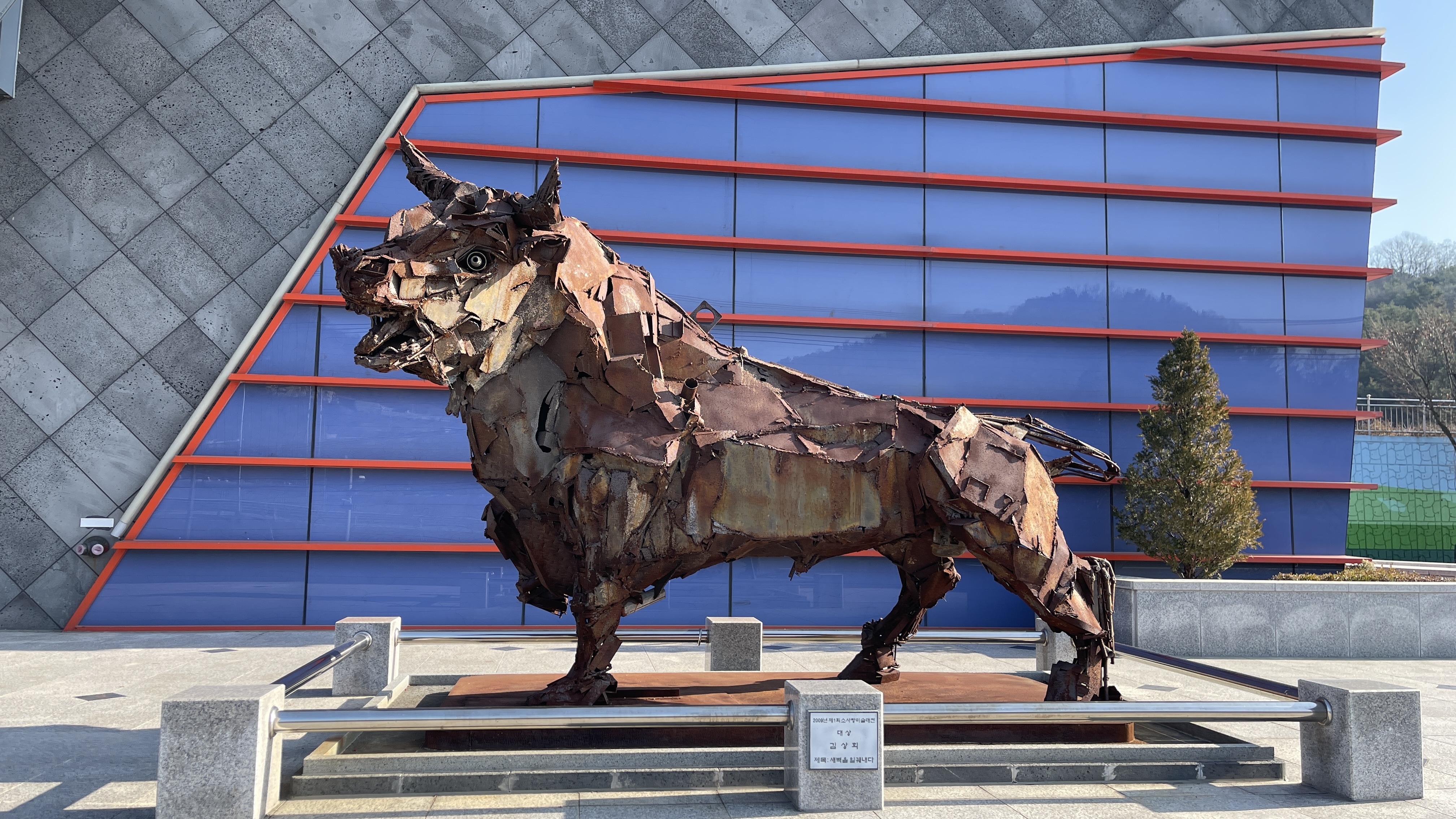 예전에도 있었던 곳인가 싶은 청도소싸움미디어체험관. 소싸움을 주제로 한 곳이라 체험관 앞에 역동적인 소 한마리가 떡하니 서있다.