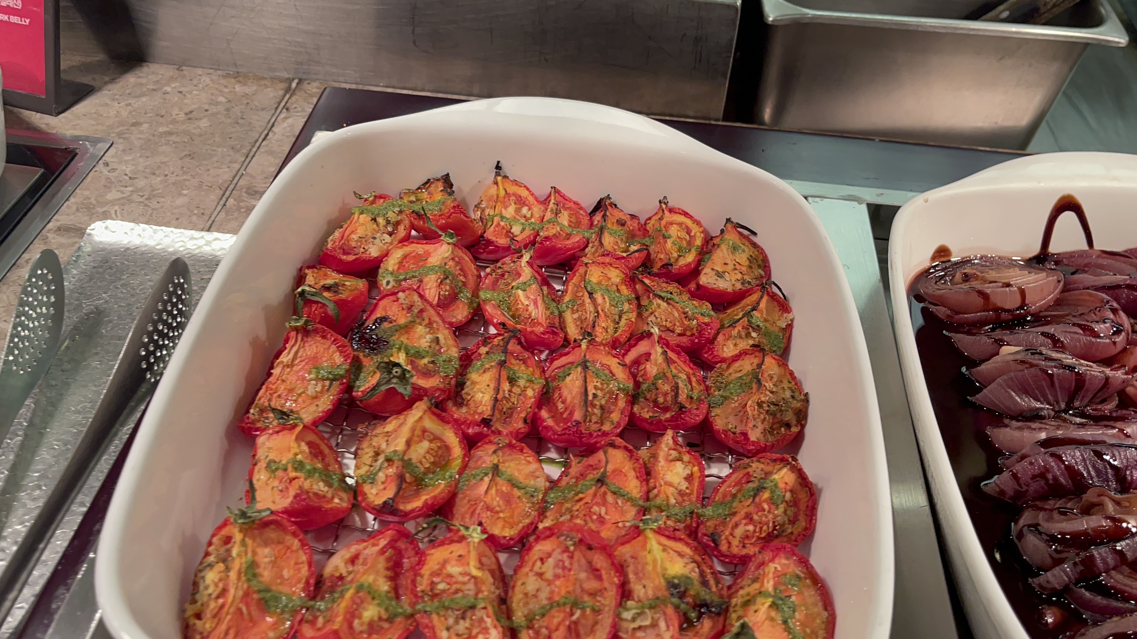 구이류와 먹기에 좋았던 구운 야채(양파)와 구운토마토. 토마토는 구워졌는데도 살살 녹는 맛이 일품이다. 마법과도 같은 구운 토마토 맛에 홀딱 반해버렸다.