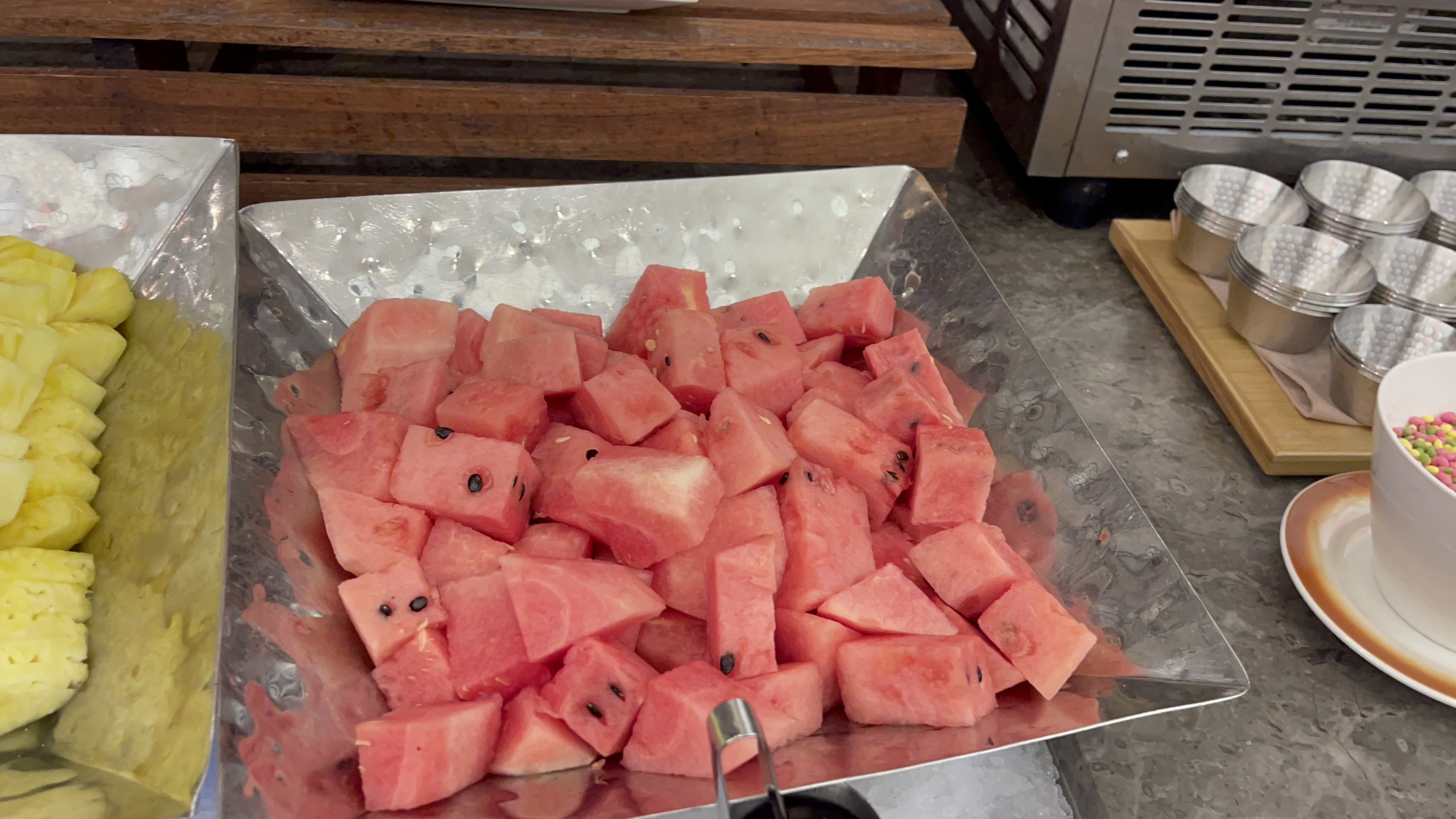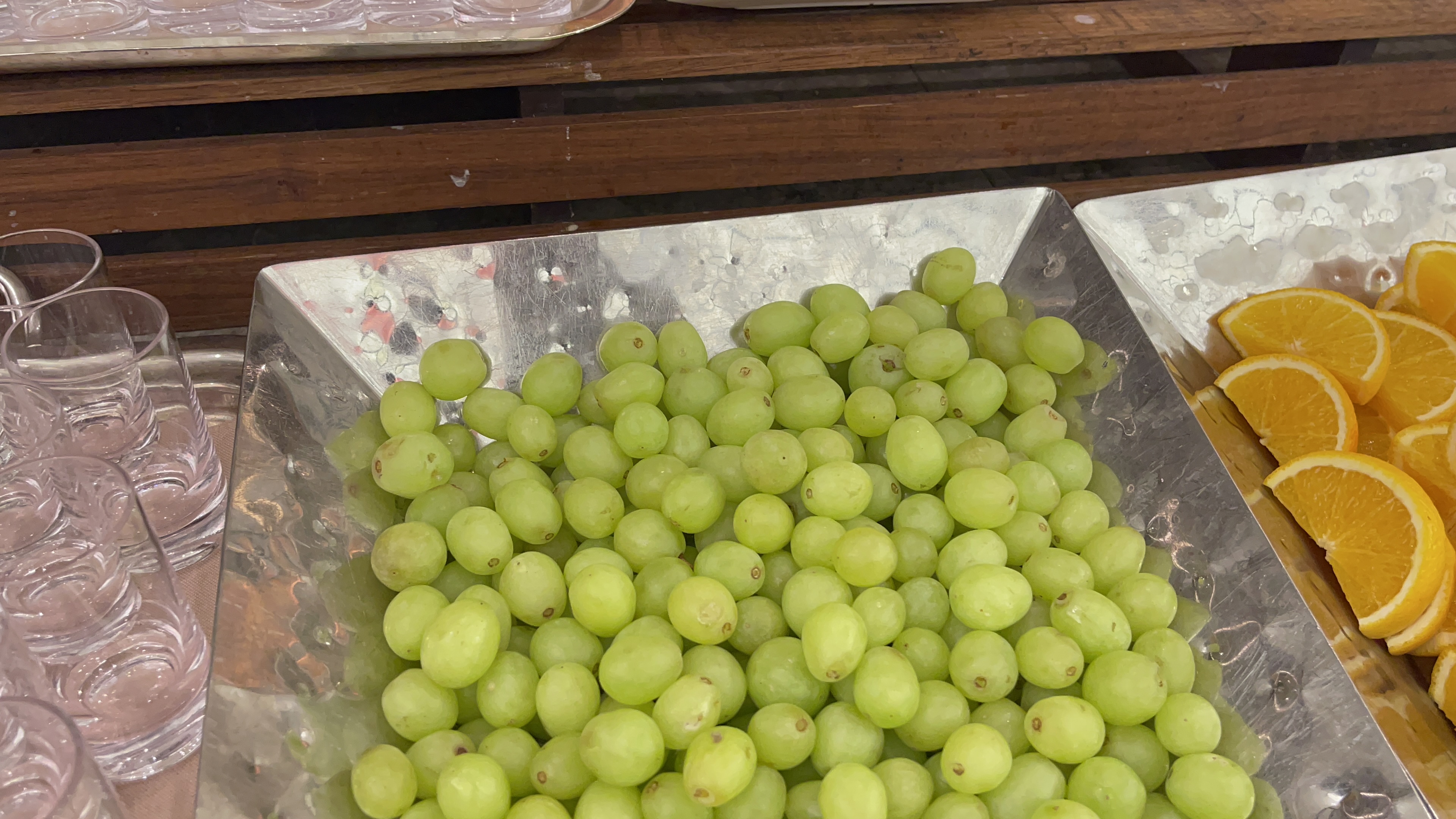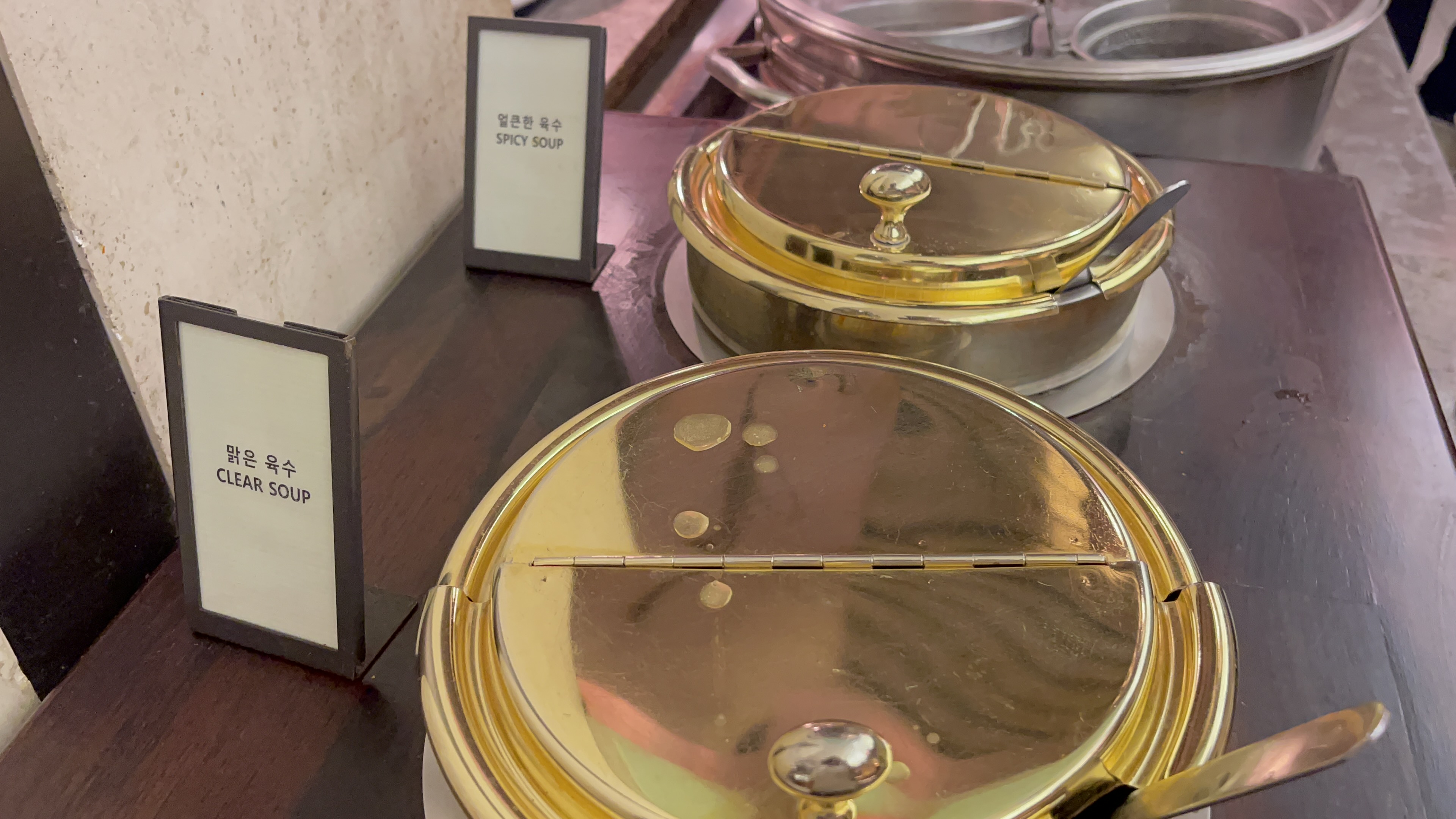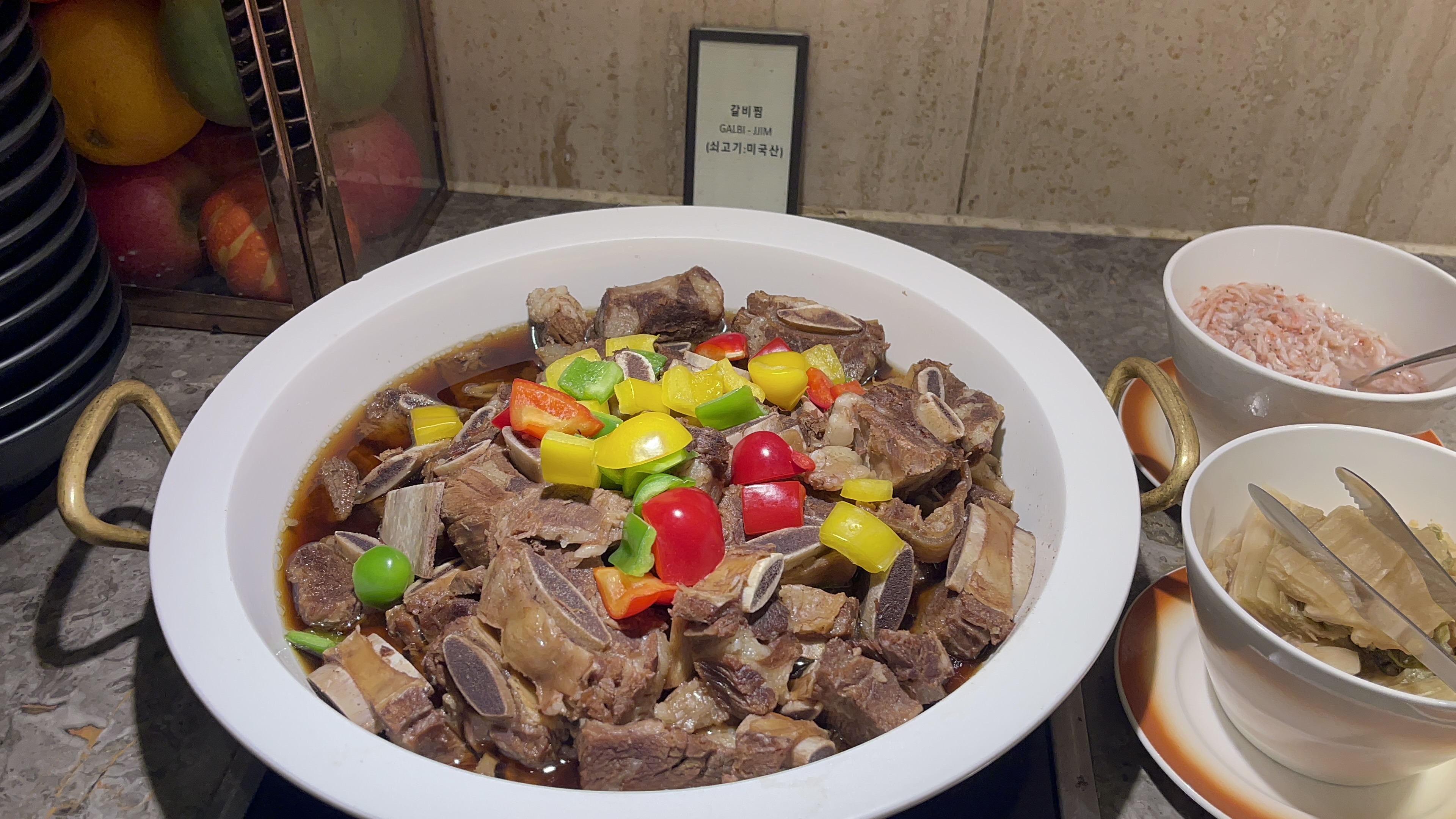 탄산음료가 별도로 준비되어 있지 않아서 아쉽긴 하지만, 오렌지, 포도쥬스 두가지와 수정과가 준비되어 있다. 6만원대 호텔 뷔페임을 감안하면 나쁘지 않은 수준인데, 대구 인터불고 뷔페와 비교하자면 가짓수나 맛에 있어서 인터불고의 승. 아무래도 대구경북지역에선 인터불고가 대장일듯..
