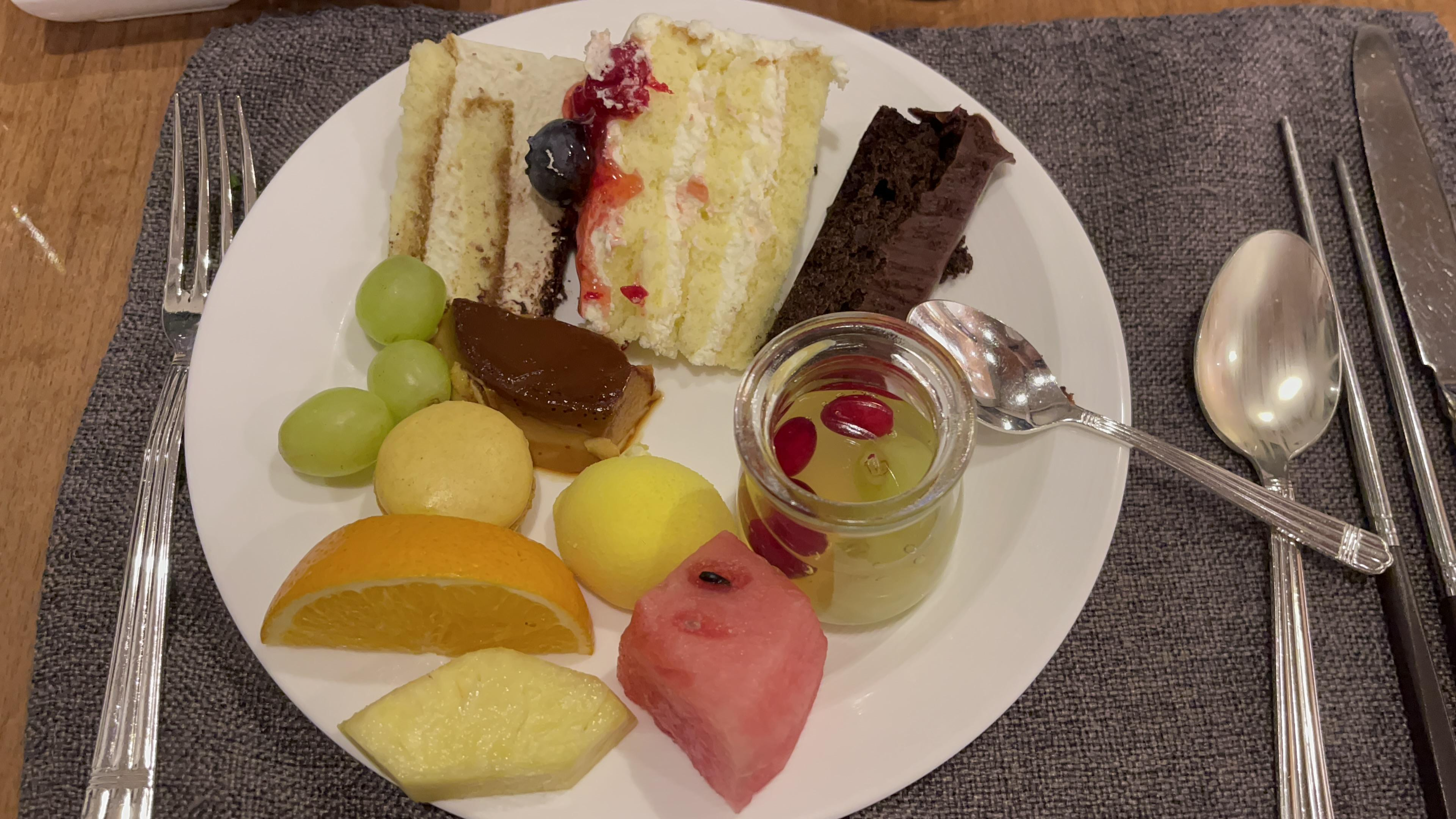 디저트류는 쏘쏘~ 노지 감귤이 끝물이라 맛없는 거 가져다 놓은게 아닌가 싶었는데 상큼한 오렌지가 대신 자리를 하고 있어서 입안을 개운하고 상큼하게 해주었다. 그러고 보니 제주에 살면서, 오렌지는 정말 오랜만에 먹어보는 것 같다.
