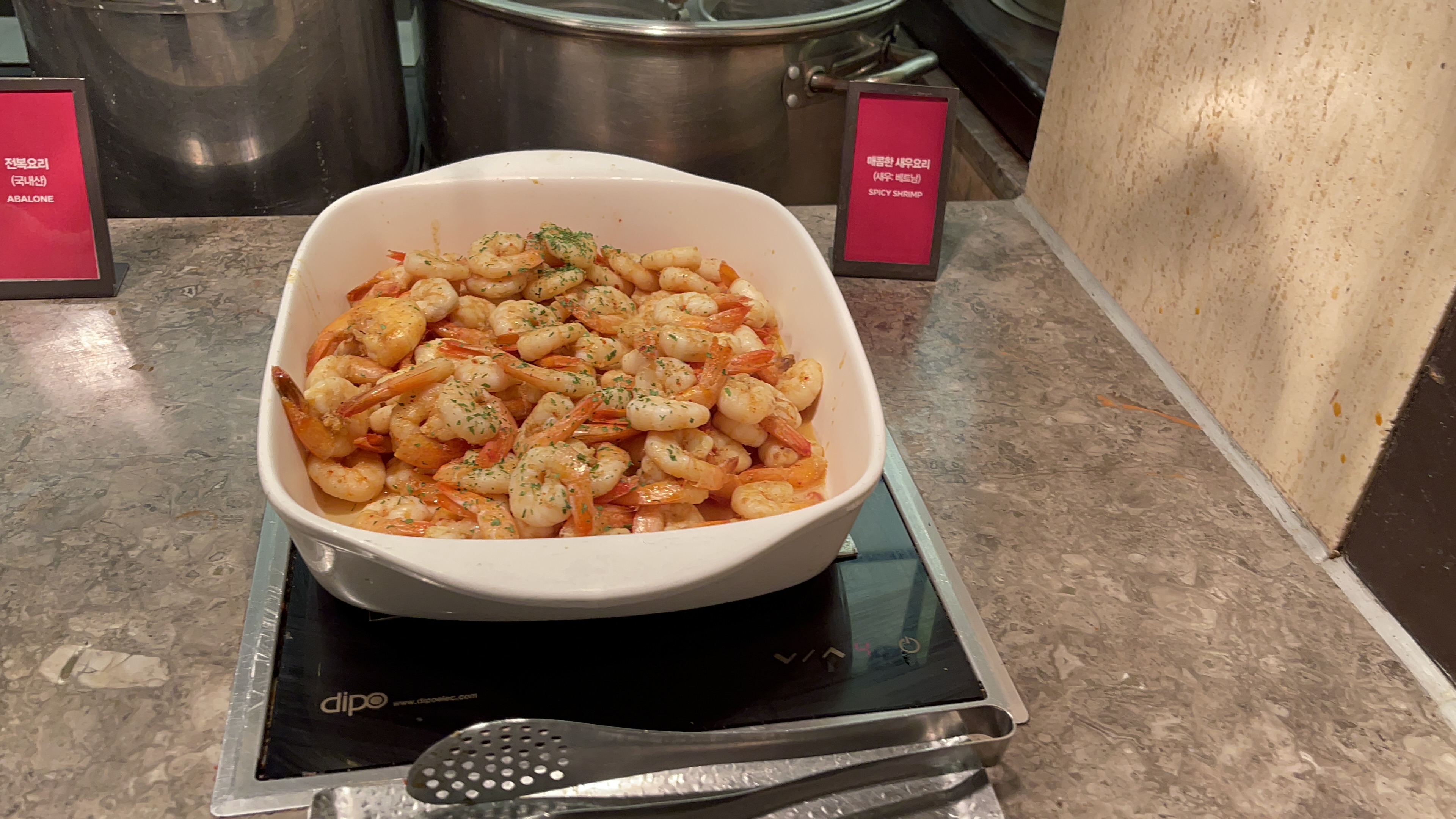 매콤한 새우요리와 전복요리. 하지만 매콤하지 않고 먹기 좋았던 새우와 소스맛이 좋았던 전복요리였다. 계속 먹으면 질릴만도 한데, 다른 곳보다는 소스덕에 몇개는 더 먹을 수 있는 맛.