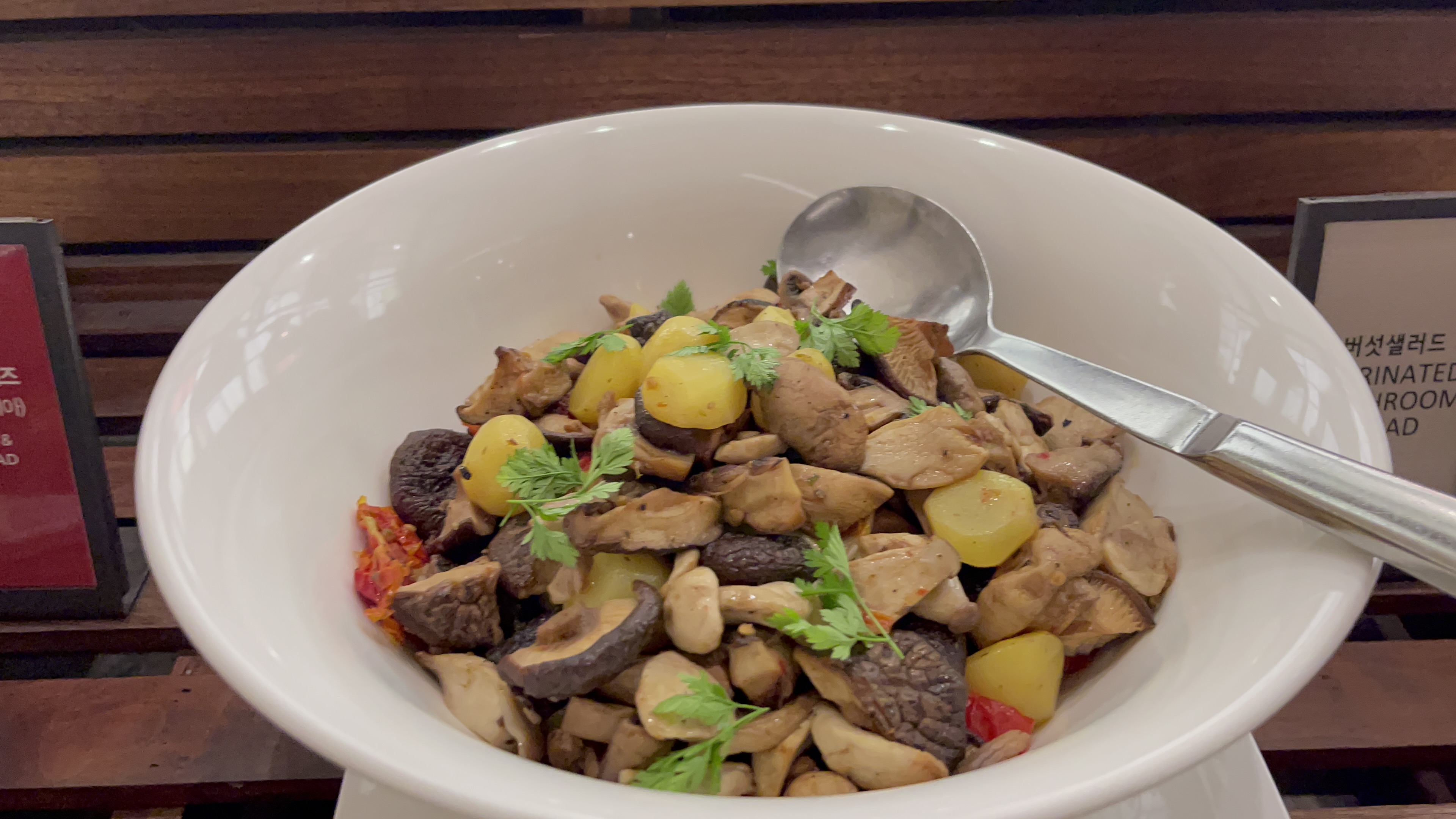 버섯샐러드와 시저샐러드류. 그닥 친하지 않은 동네라서 사진만 찍어 보았다.