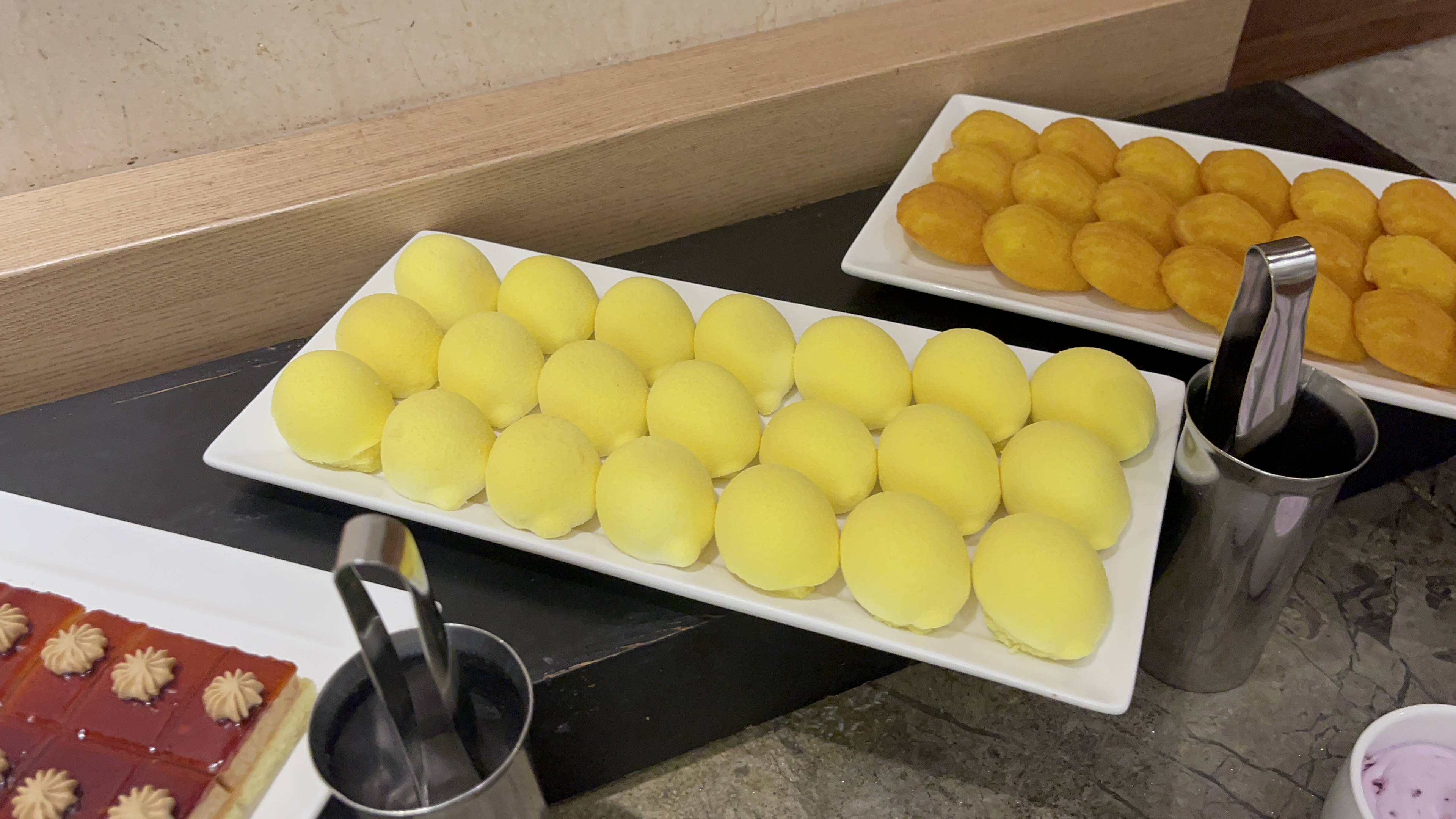 마들렌은 보통의 그 맛인데, 요 노랗게 생긴 녀석이 압권이다. 입안 가득 넣으면 부드럽게 사라져버리는 푹신함과 크리미함이란... 눈을 휘둥그레 만들어주는 마법과 같은 디저트이다. 도쿄바나나를 훨씬 부드럽게 만들어 놓은 것 같은 부드러움이다.