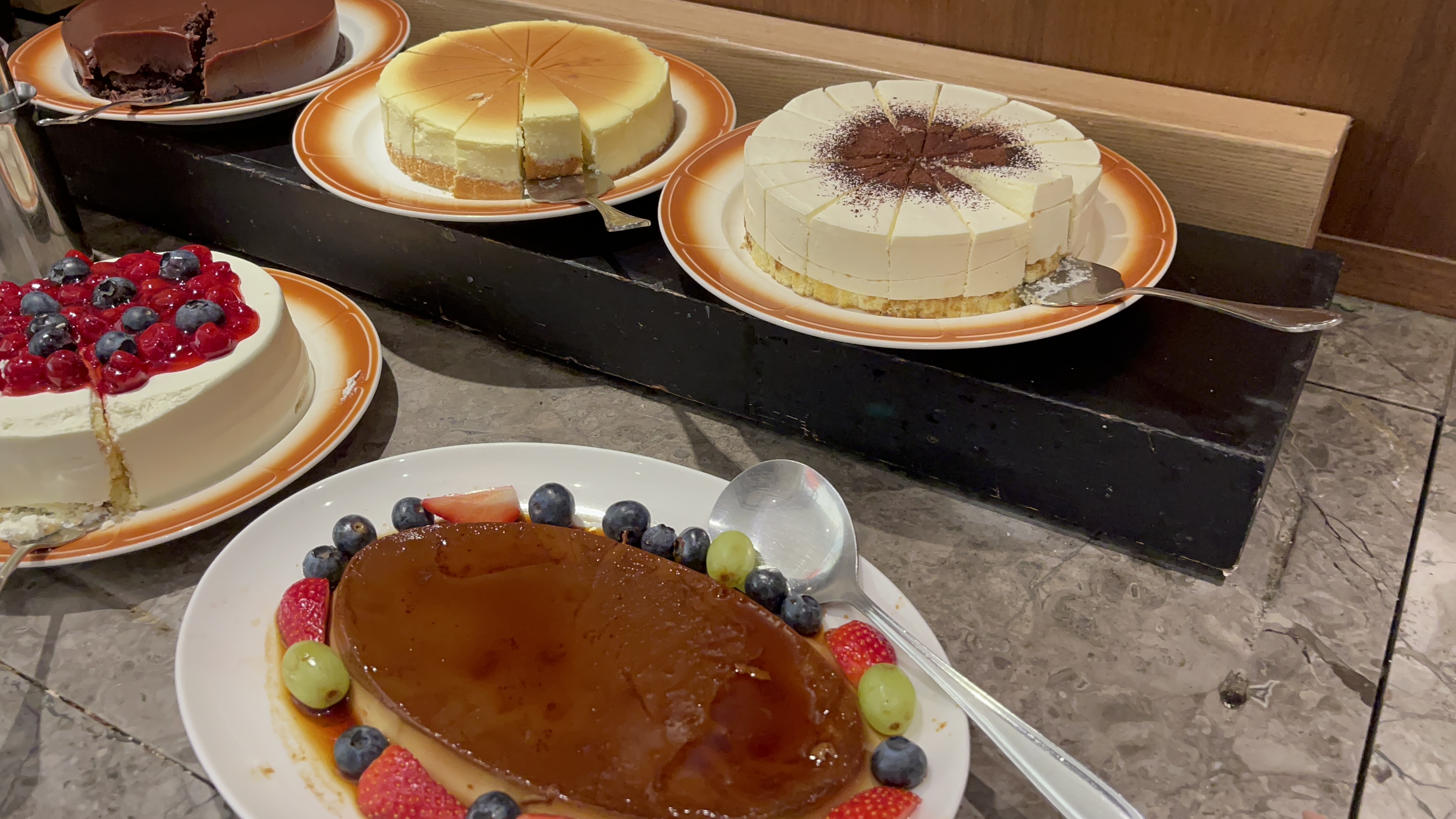 다른건 몰라도 디저트류 만큼은 확실히 사람을 기분 좋게 만드는 녀석들이 많다. 다크초콜릿의 묵직한 맛이 일품인 초코케익부터, 치즈향 가득 치즈케익, 생크림케익, 무스케익 등 달콤한 맛이 입안가득 흘러넘치게 들어온다. 이정도 가성비에서 이런 디저트류는 평점을 드높이는데 일등공신이 될 것 같다.