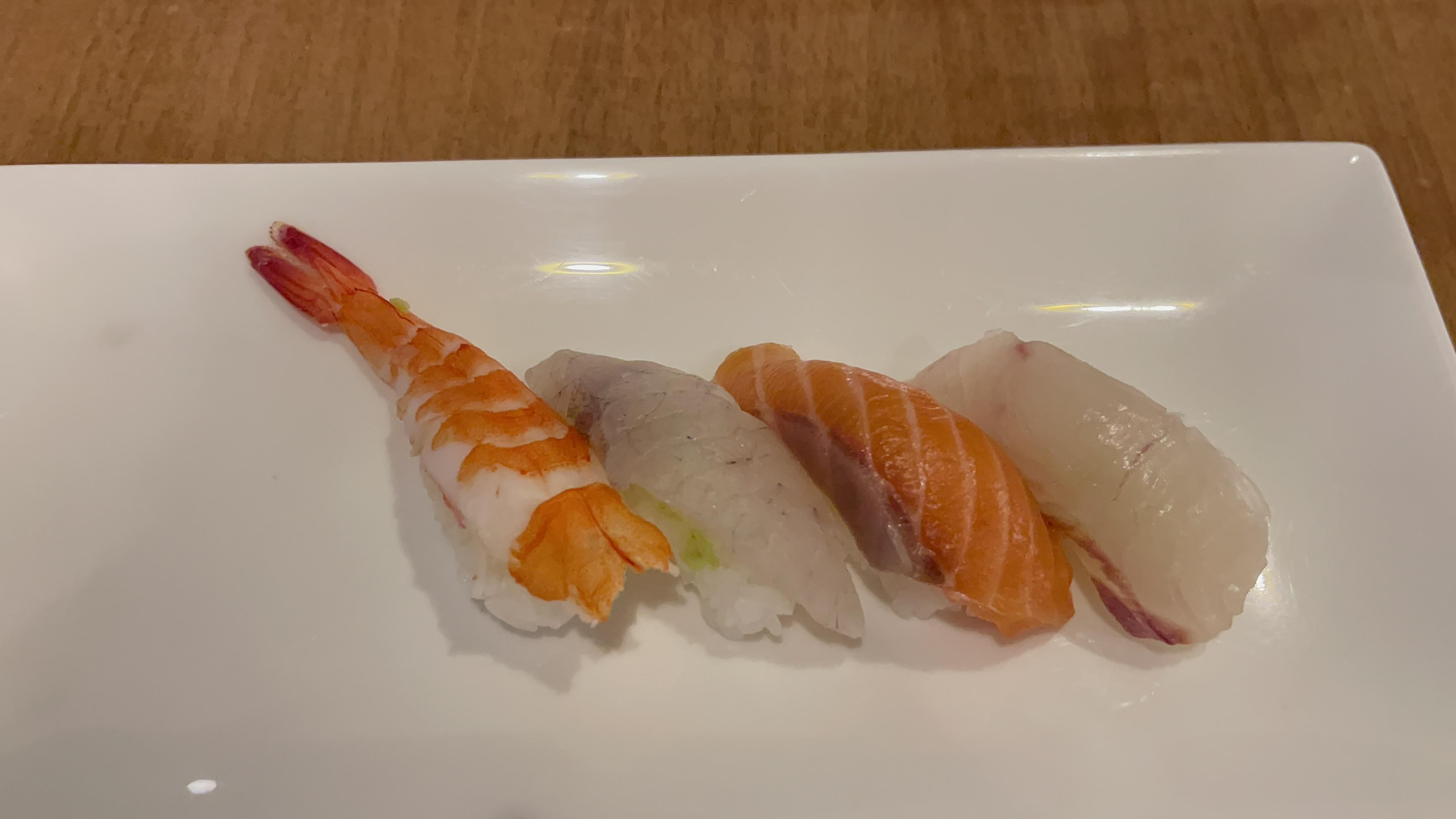 초밥은 정갈하고 깔끔한 맛인데, 미리 준비해놓아서인지 약간 매트하게 겉이 말라버린 것 말고는 괜찮다. 새로 가져다 먹는 초밥은 촉촉하긴 했다.