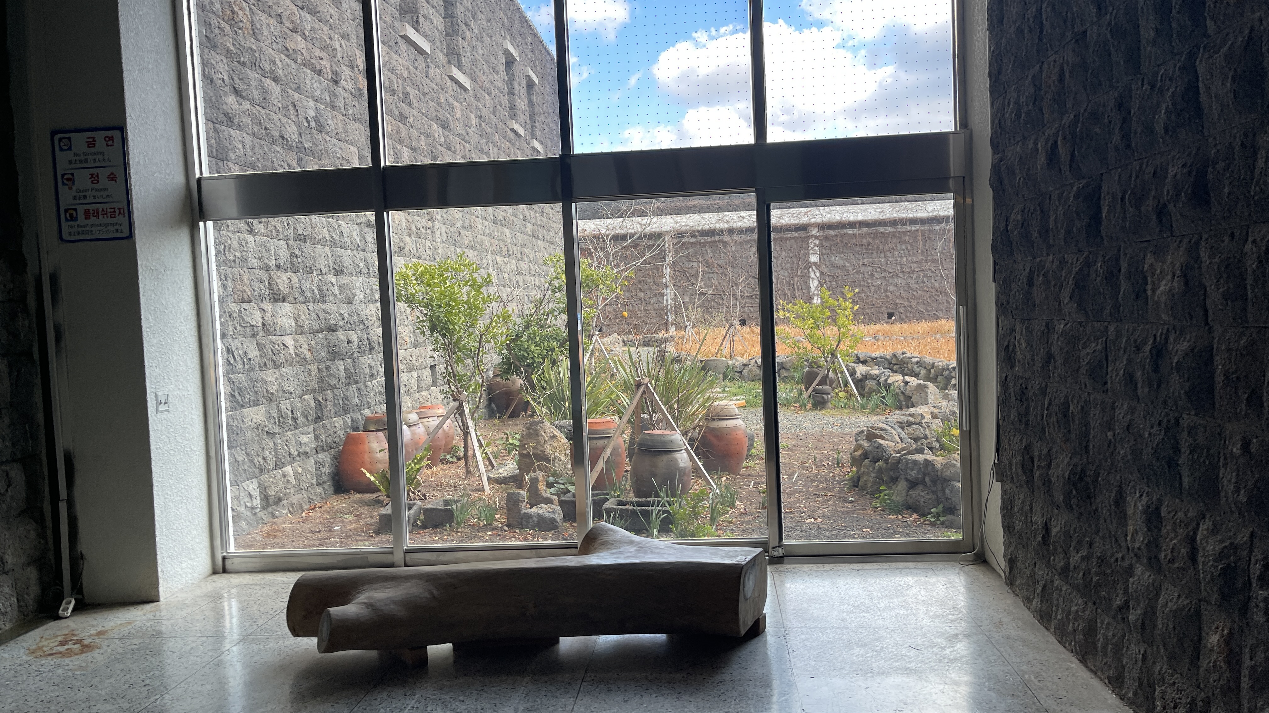 민속전시실로 향하는 통로 우측엔 이렇게 바깥 정경이 훤히 보이는 유리창으로 되어 있어 운치있다.