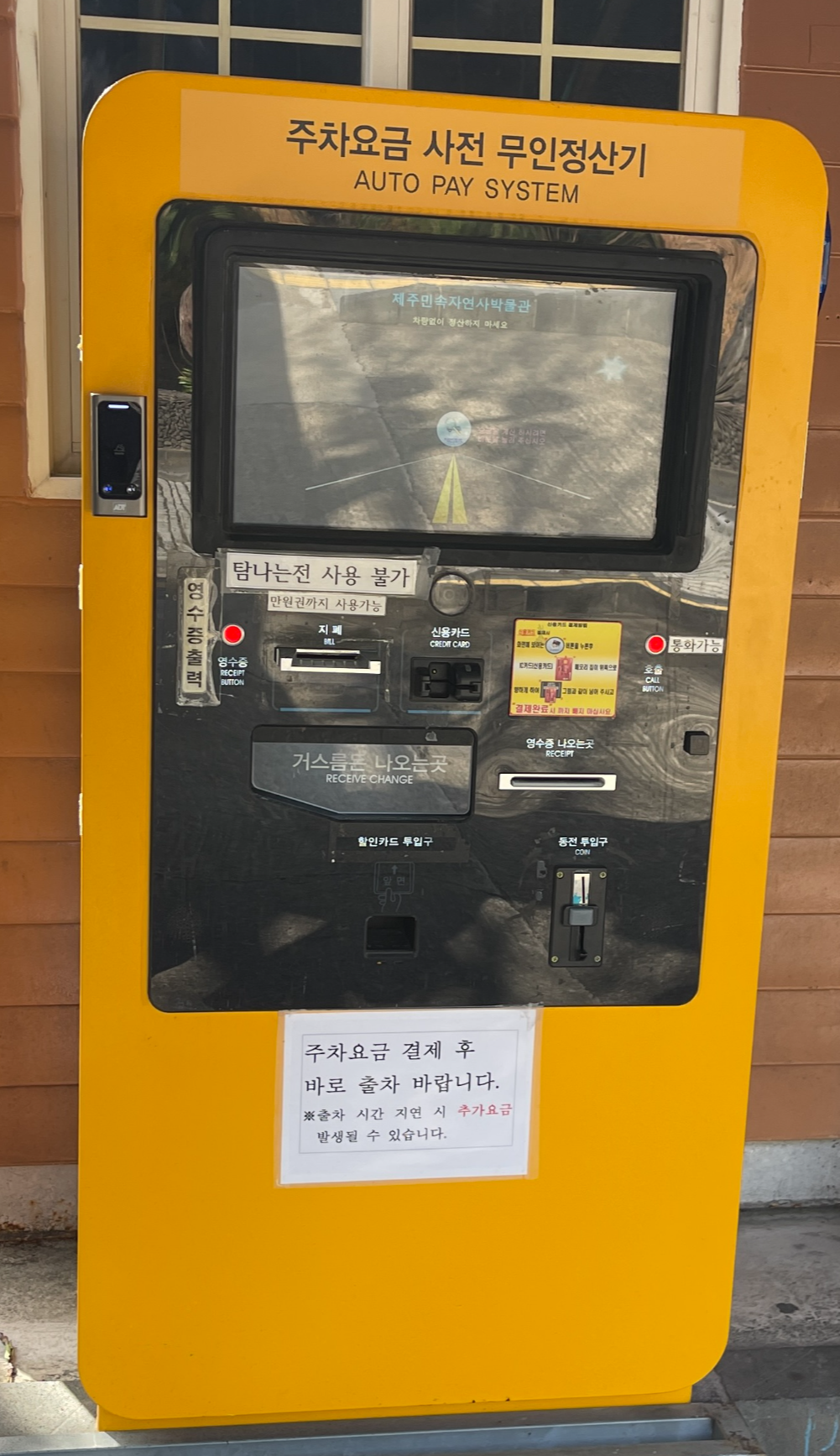 주차장은 넓어서 주차가 편하다. 유료로 운영중이나 대략 1,000원 정도의 비용이라 부담스럽지 않다. 출차하기 전 무인 정산기에서 정산하면 된다.