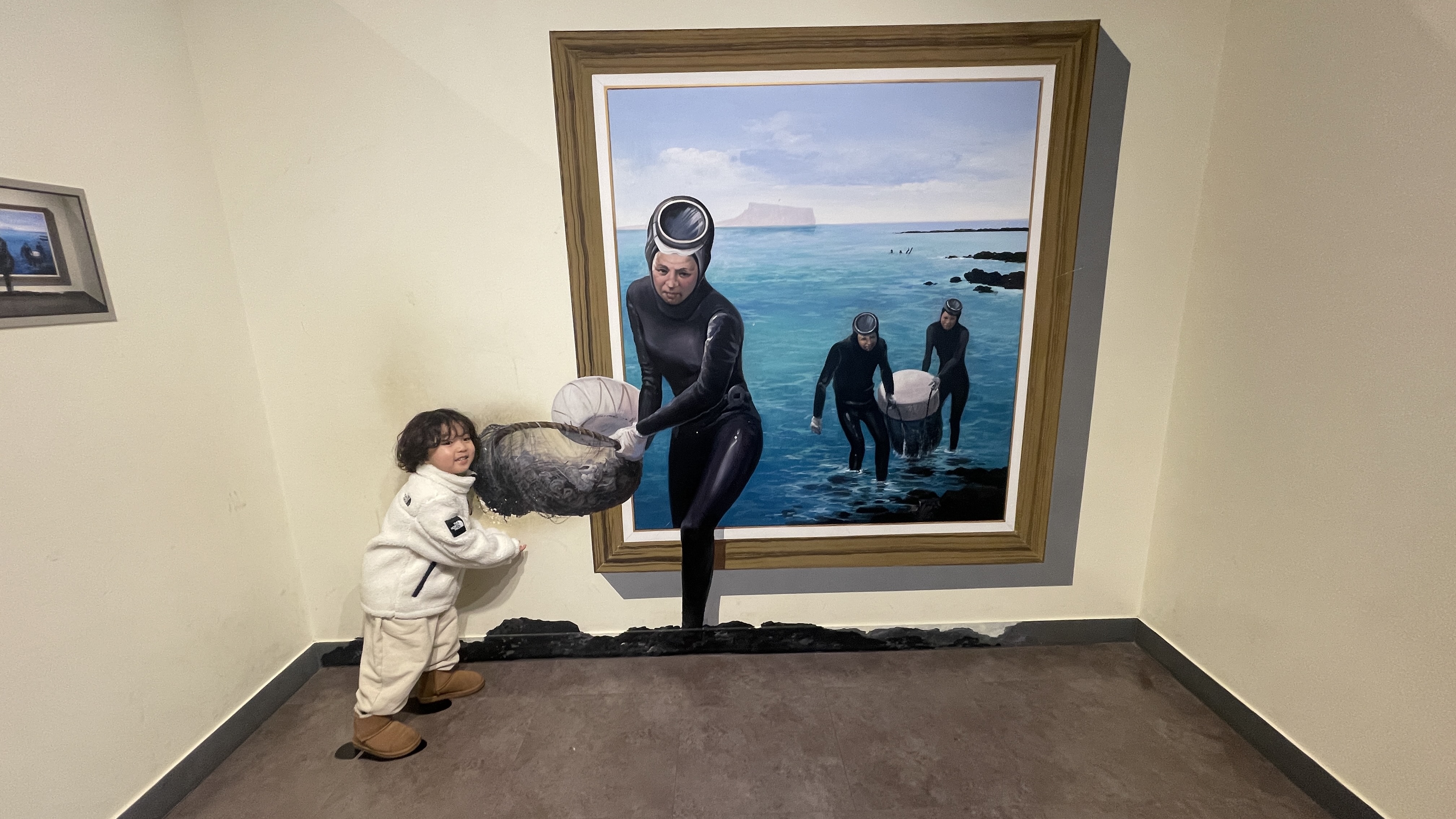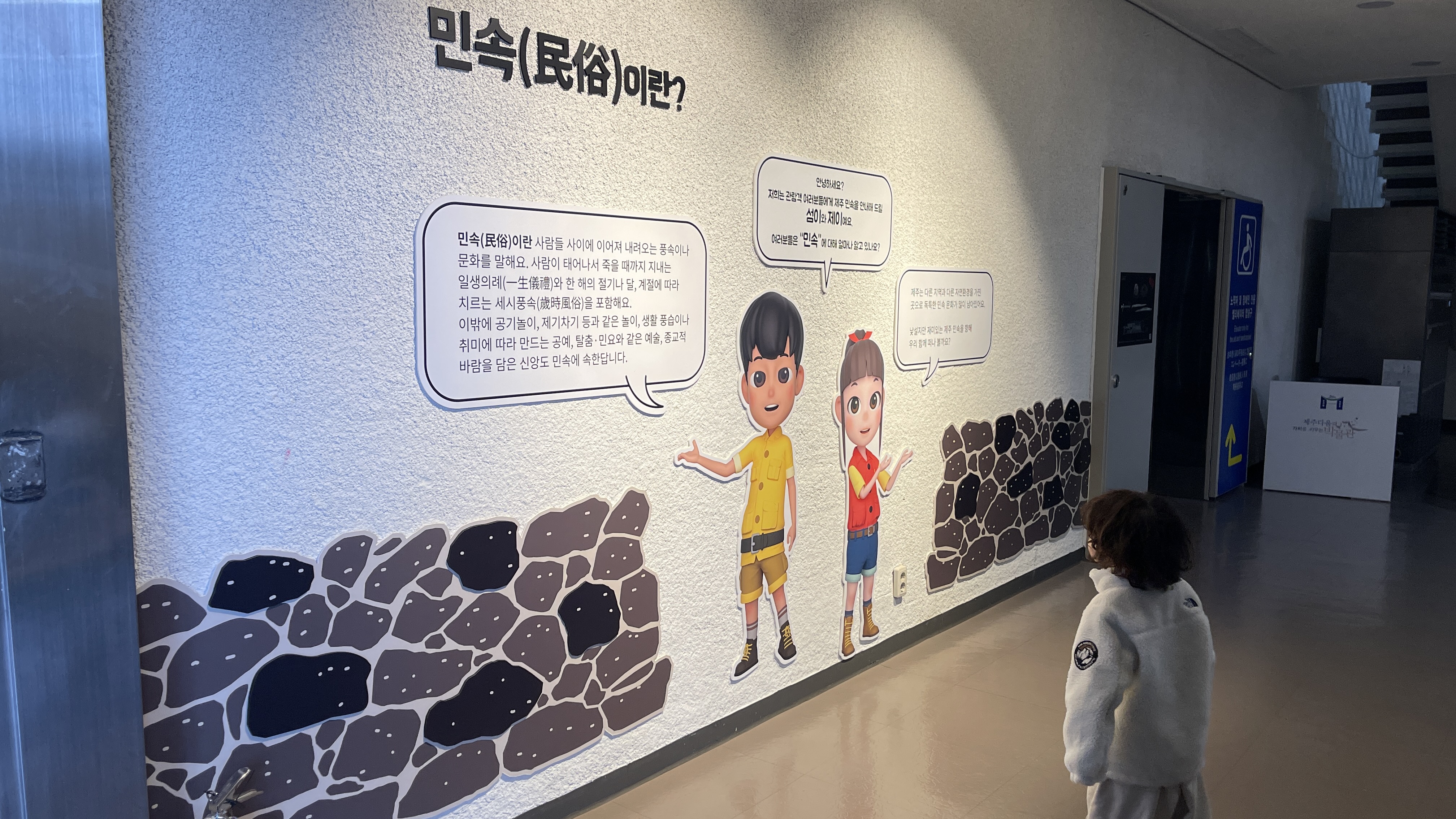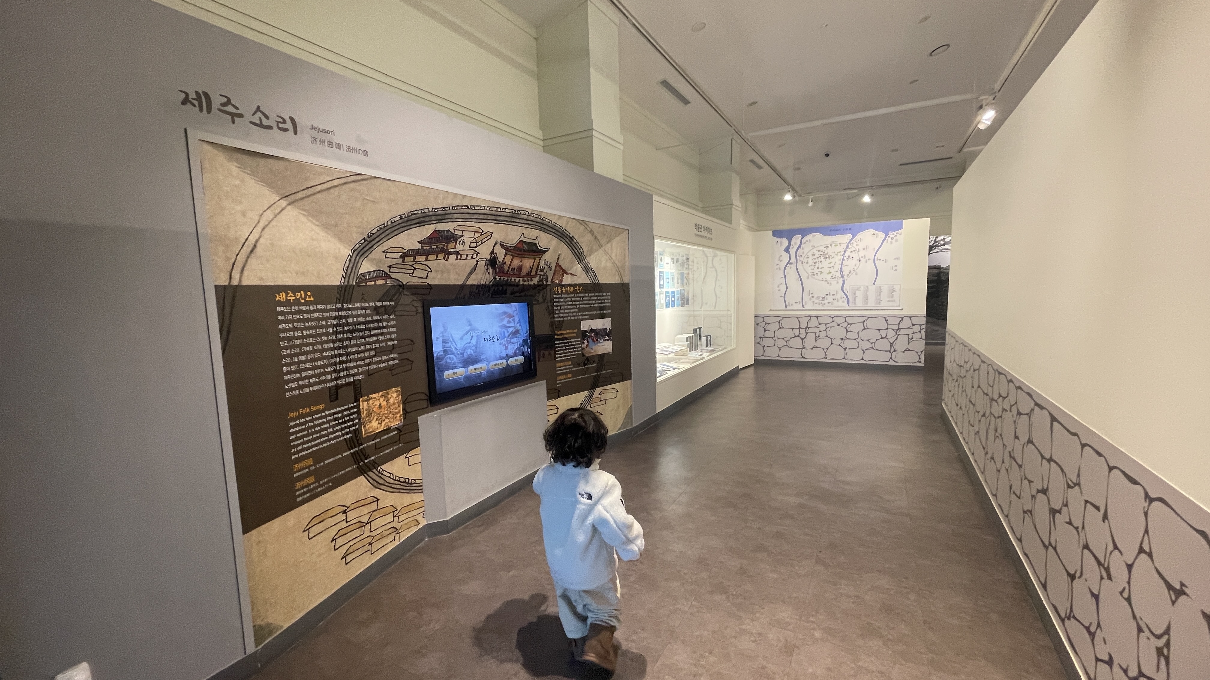 통로 좌측엔 제주의 민속에 대한 영상이 나오는데, 그다지 흥미가 없는지 바로 이동하자는 라온.