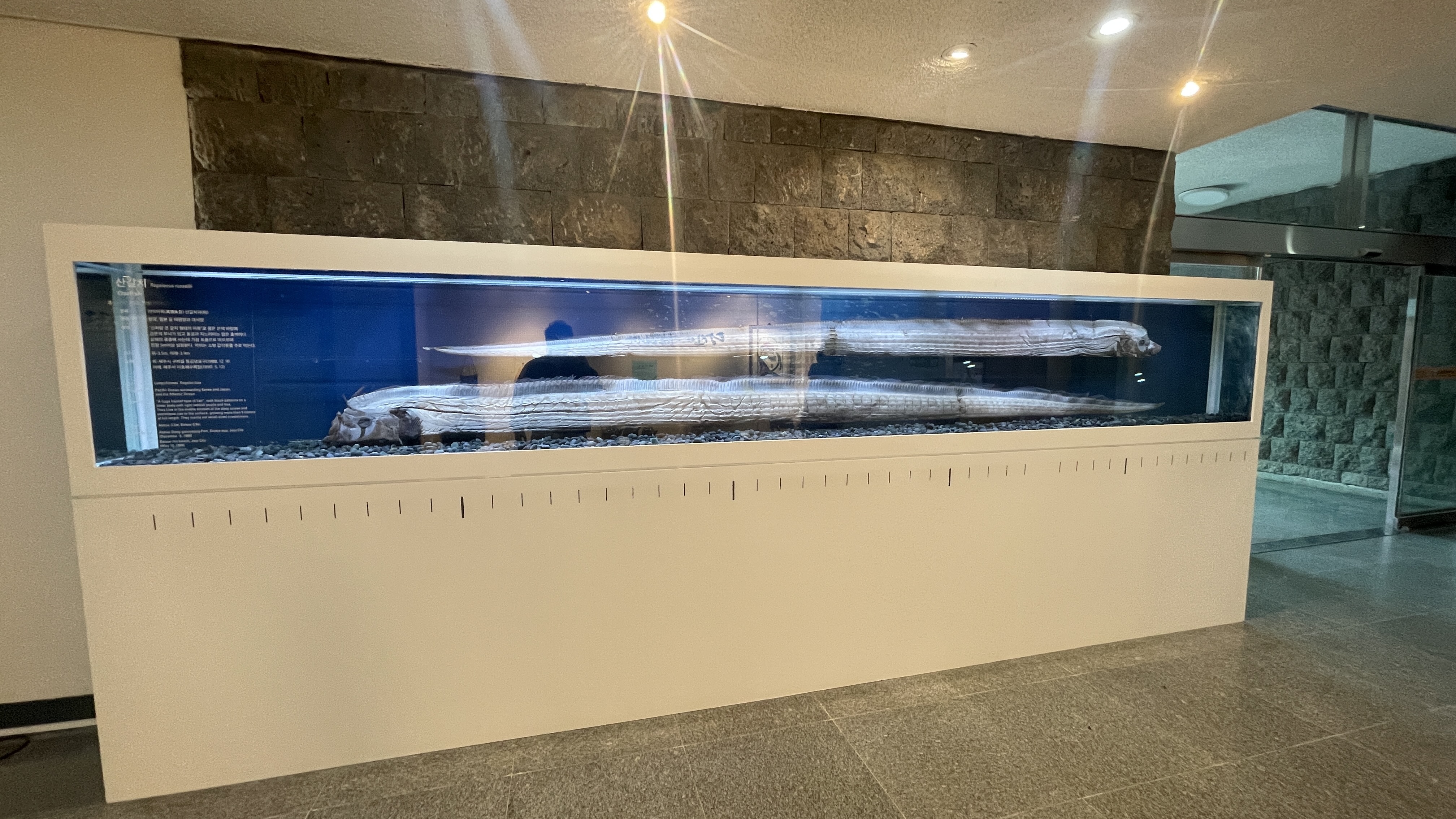 이제 모든 관람이 끝난건가 싶어 밖으로 향하려다가 보니, 큰 갈치가 보인다. 세상에.. 이렇게나 큰 갈치가 있다니..라는 신기한 구경을 하고 있는데, 밖으로 향하는 문으로 또다른 전시실이 있다는 안내가 눈에 들어온다. '제주바다전시관'