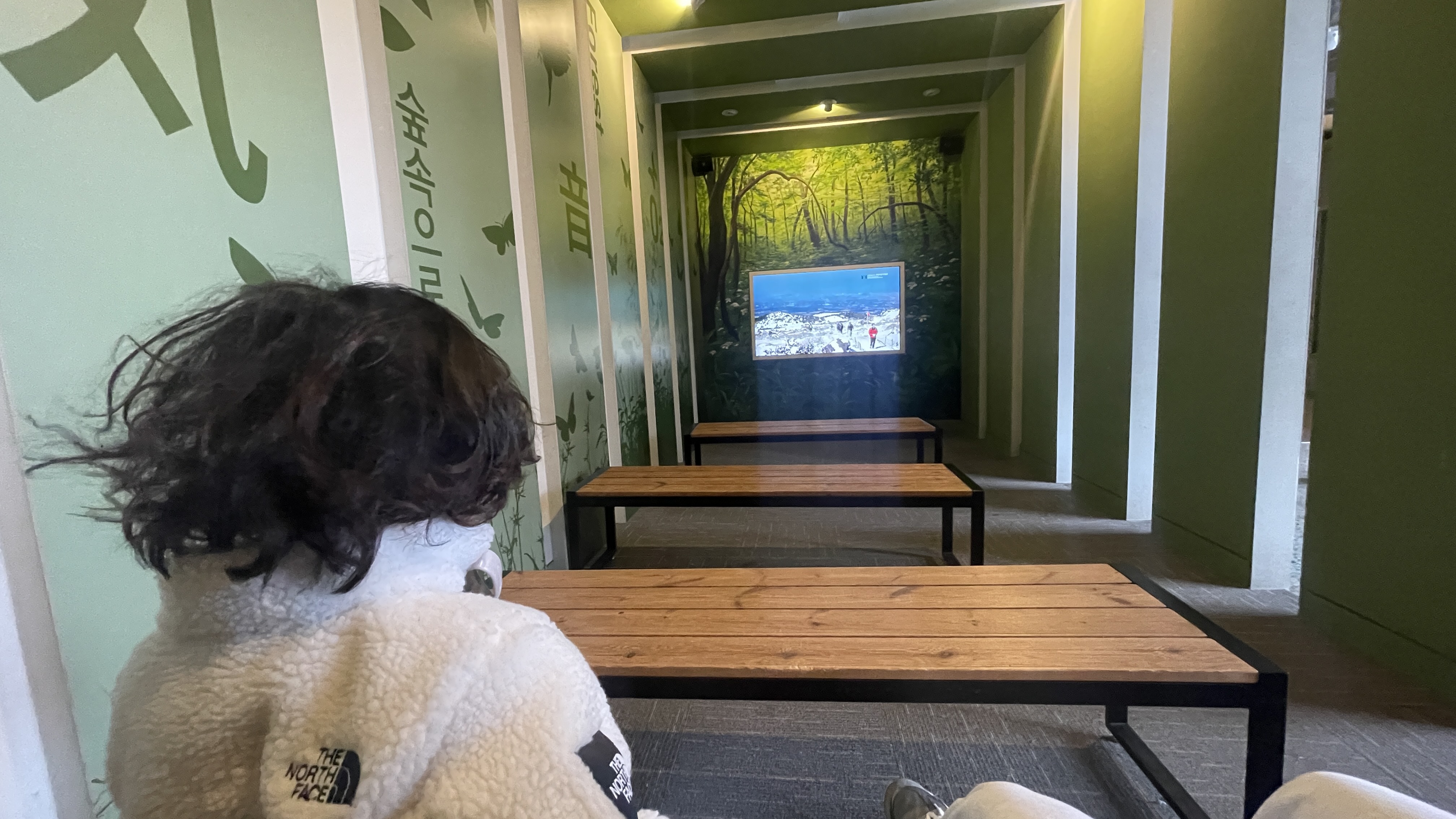 따뜻함이 좋았는지 아니면 오래도록 걸어서 힘들었는지 조금 더 휴식을 취하려는 것 같아서 조금 더 앉아있을 것 같아 앞에 앉았더니.. 바로 일어서며 "아빠 얼른가자!"라고 한다.