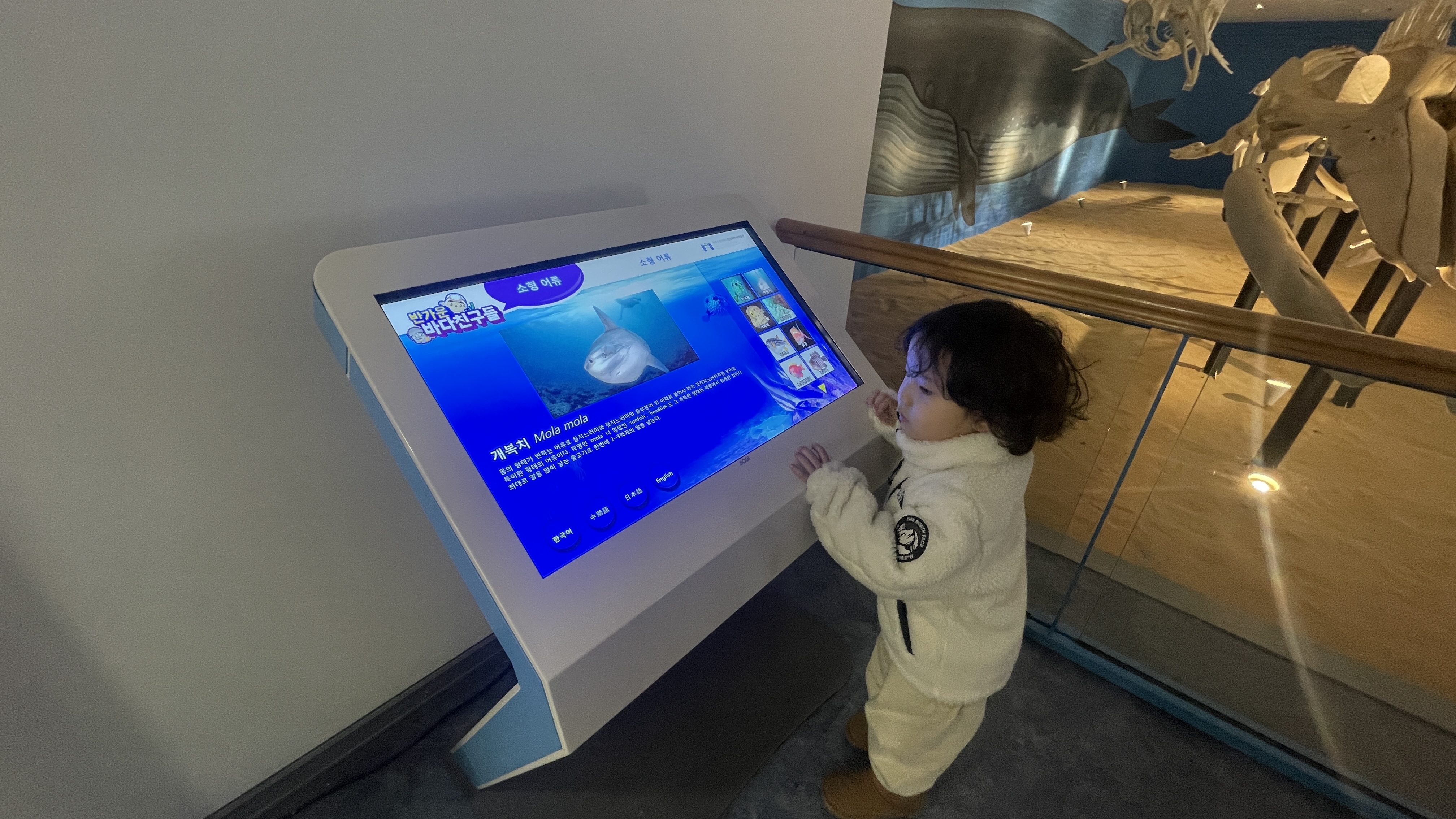 그래도 아이들의 눈높이에 맞춘 시청각 자료들이 있어서 좋다. 아직 팔이 짧아서 모든 버튼을 다 누르지 못하고 해안가에 있는 것들만 확인 가능하지만... ^^