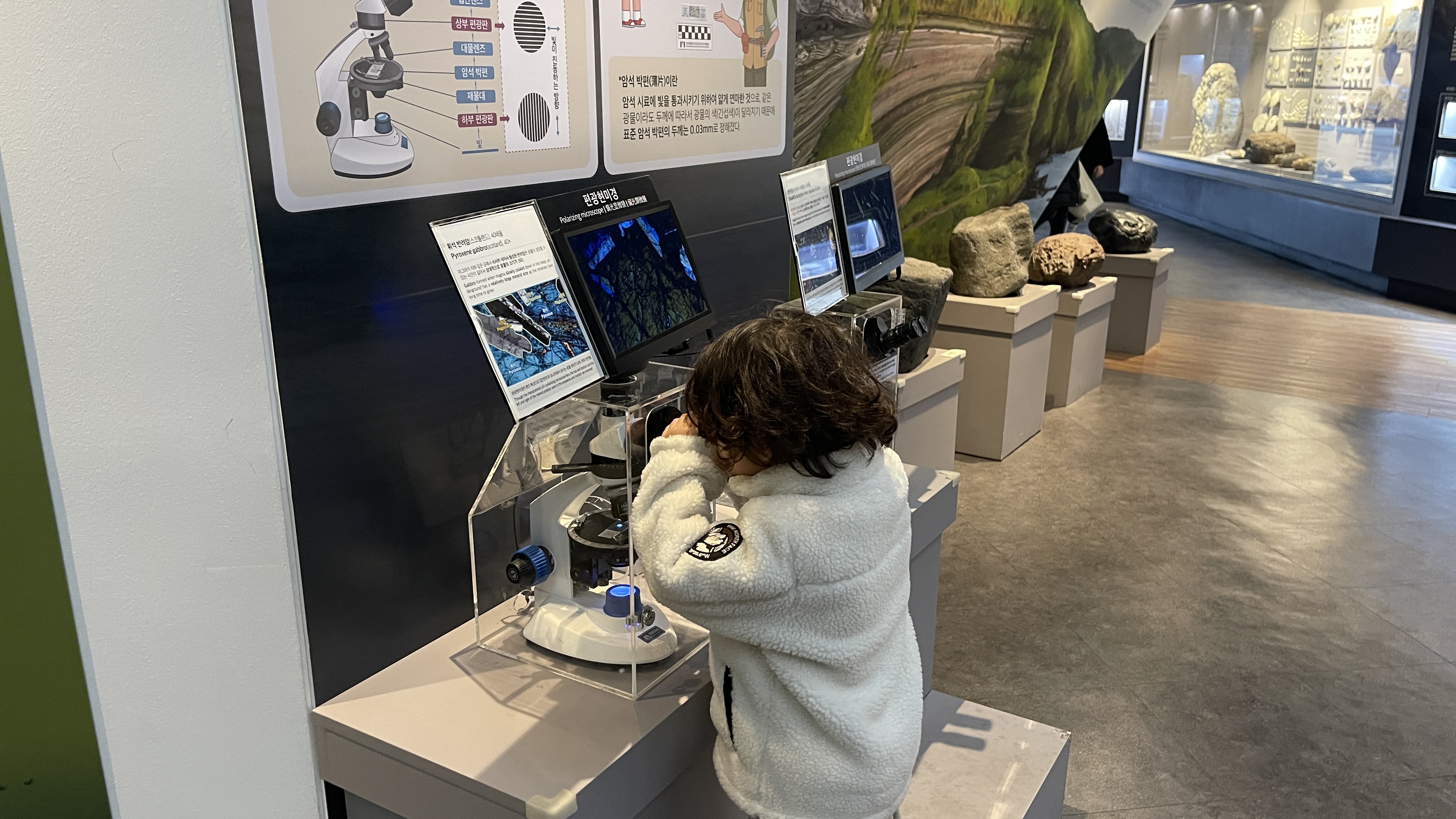 암석의 모양을 현미경으로 관찰하면서 엄청 신기해하는 라온이. 현미경 관찰은 나도 참 오랜만이다.