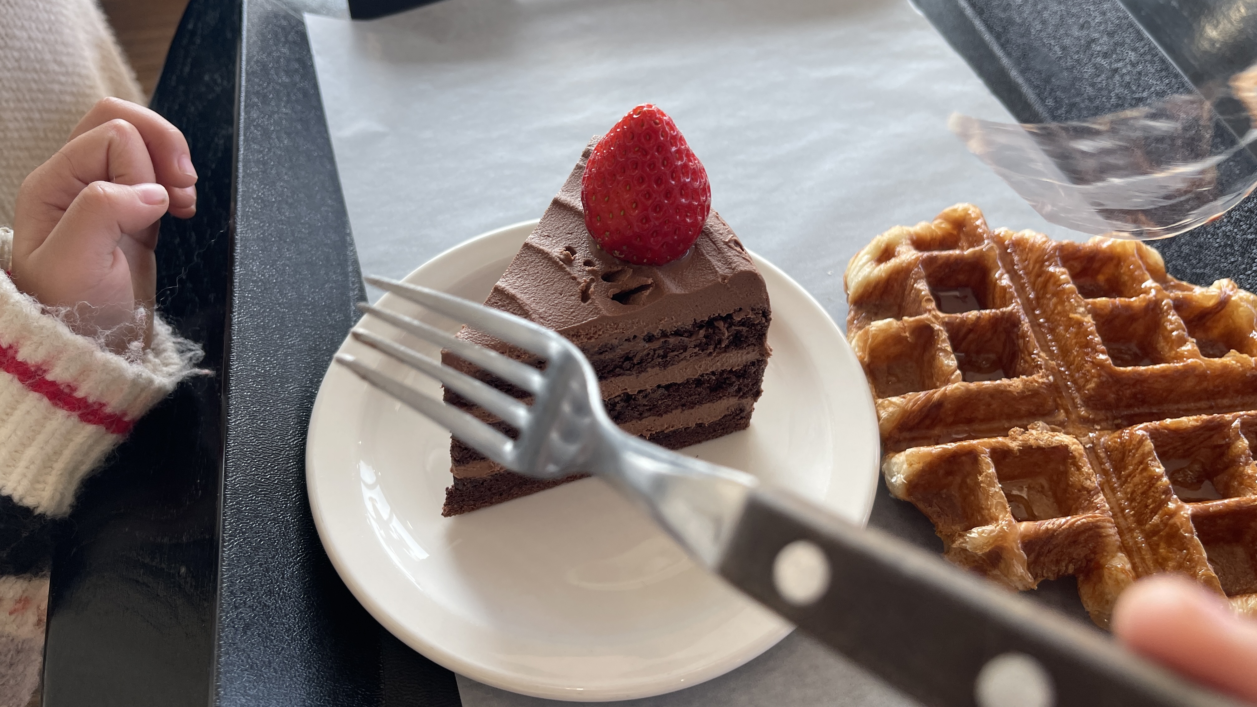 아들래미 초코케익 얻어먹는 아빠의 신세. 근데 정말 맛있다. 제발 조금만 남겨주길... ^^