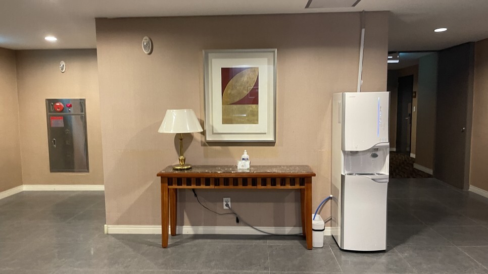 미니냉장고에 생수 2병이 준비되어 있으며 모자라면, 편의점에서 구매하면 된다.