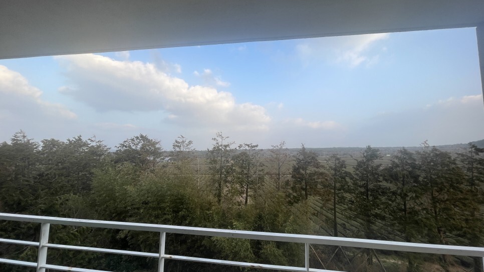 바람이 많이 불고 있어서 밤에 춥지는 않을까 걱정했는데, 너무 따뜻해서(따뜻하기보다는 너무 더웠다) 숙면을 취하고 일어나 커튼을 젖혀 보았더니 녹차밭이 바로 눈 앞에 펼쳐진다. 바다뷰나 마운틴뷰가 아님에도 좋다. 햇살이 좋은 날이면 아무래도 이것보다 더 좋을 것 같다.
