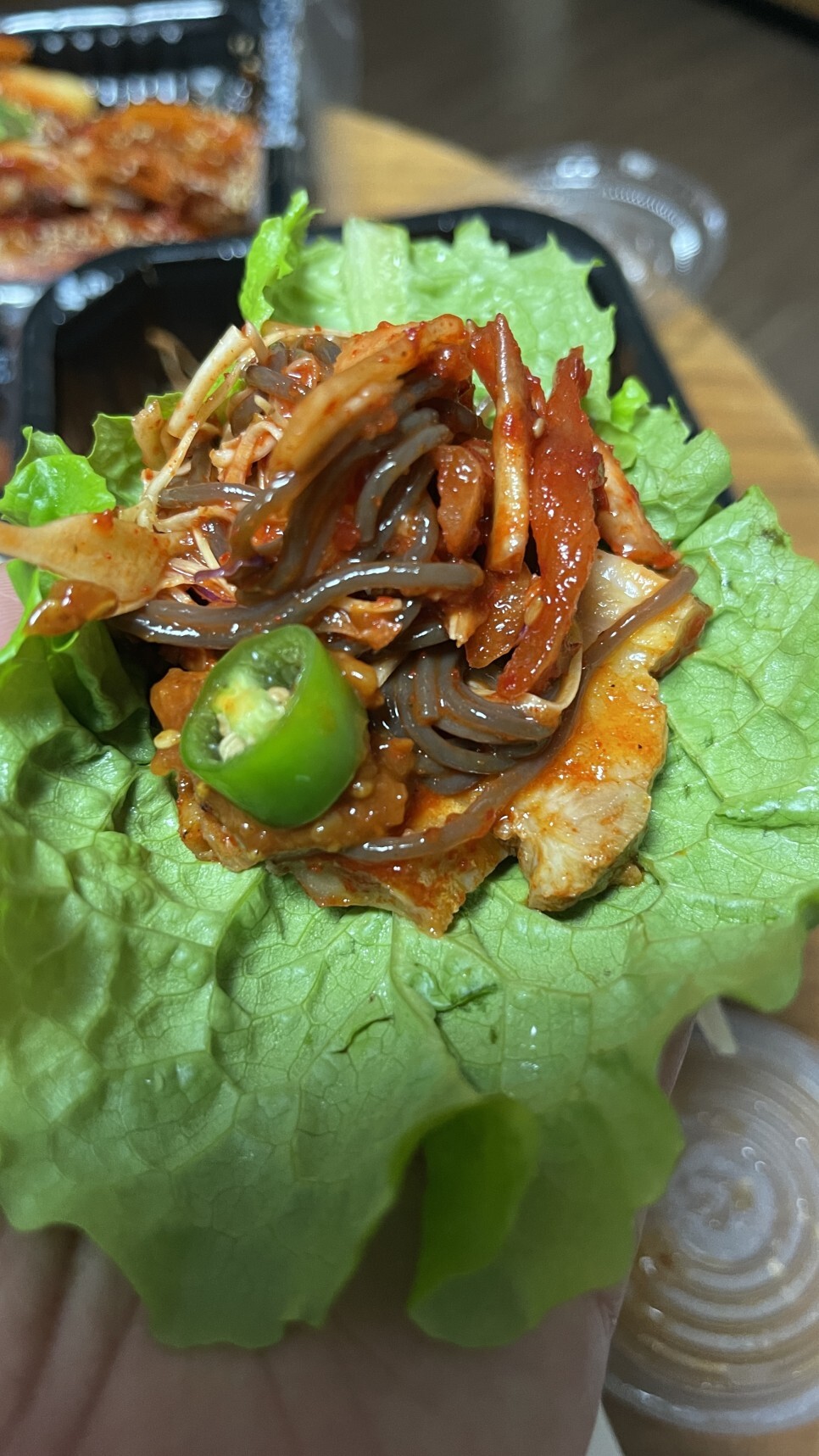 룸컨디션을 구경하다 보니 아까 주문해두었떤 보쌈이 왔다고 연락이 온다. 룸으로의 배달은 불가하고, 로비에서 만나 가지고 와야한다. 밤10시 이후로 영업하는 곳이 별로 없다보니 배달음식을 받을 수 있는 것만으로도 아주 감지덕지다.