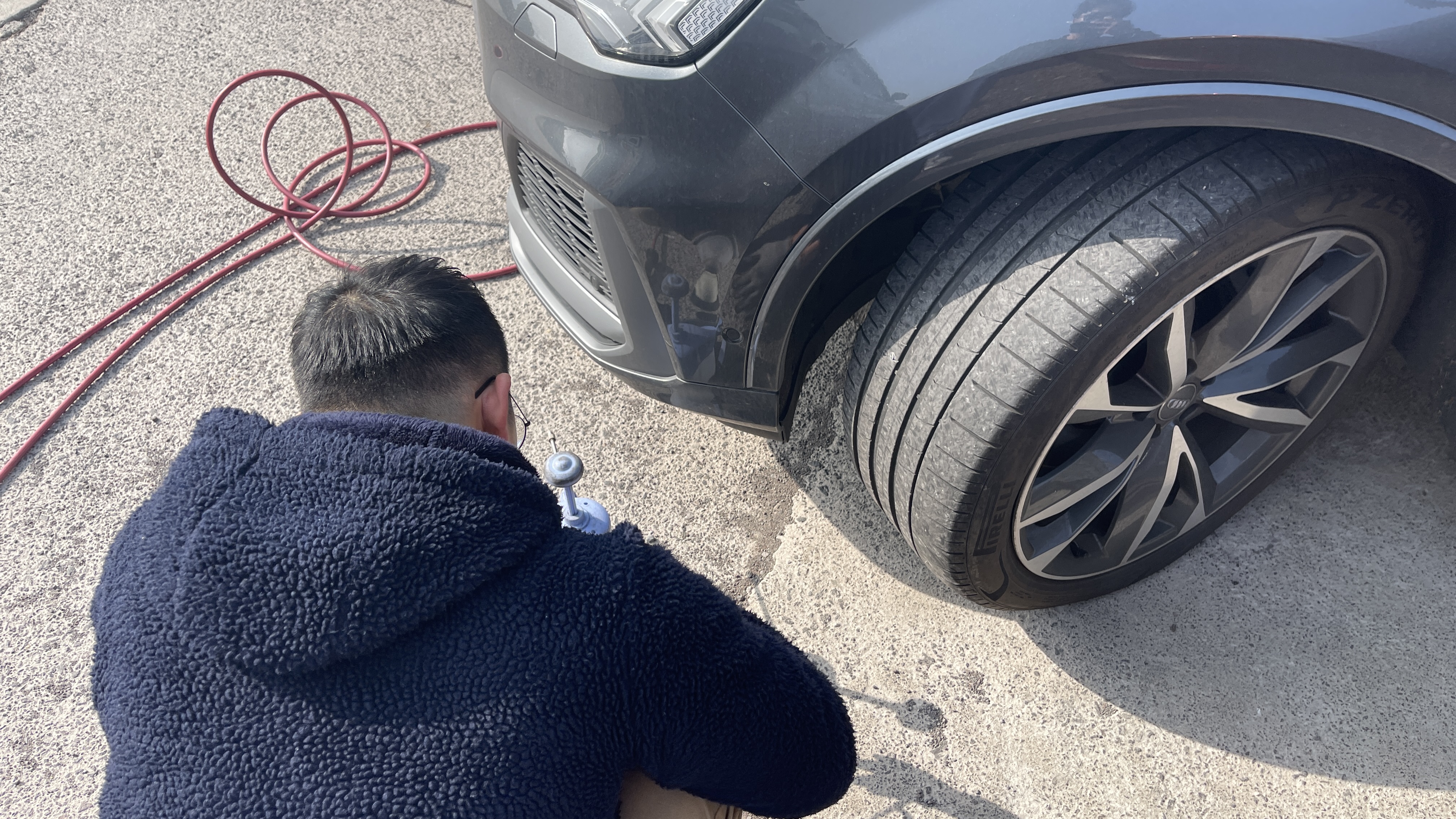 타이어 바람이 많이 빠져 보인다면서 네바퀴 모두 공기압부터 체크해주신다고 한다. 와우~ 그냥 펑크수리만 해주시는 줄 알았는데.. 좋으다..