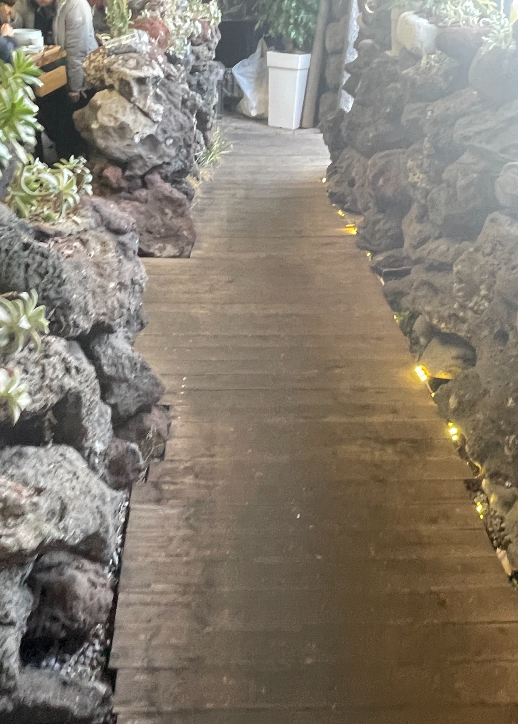 가게 내부는 제주돌담길마냥 테이블로 이동하는 통로가 만들어져 있다. 실내이지만 실외인것 같은 느낌이다.
