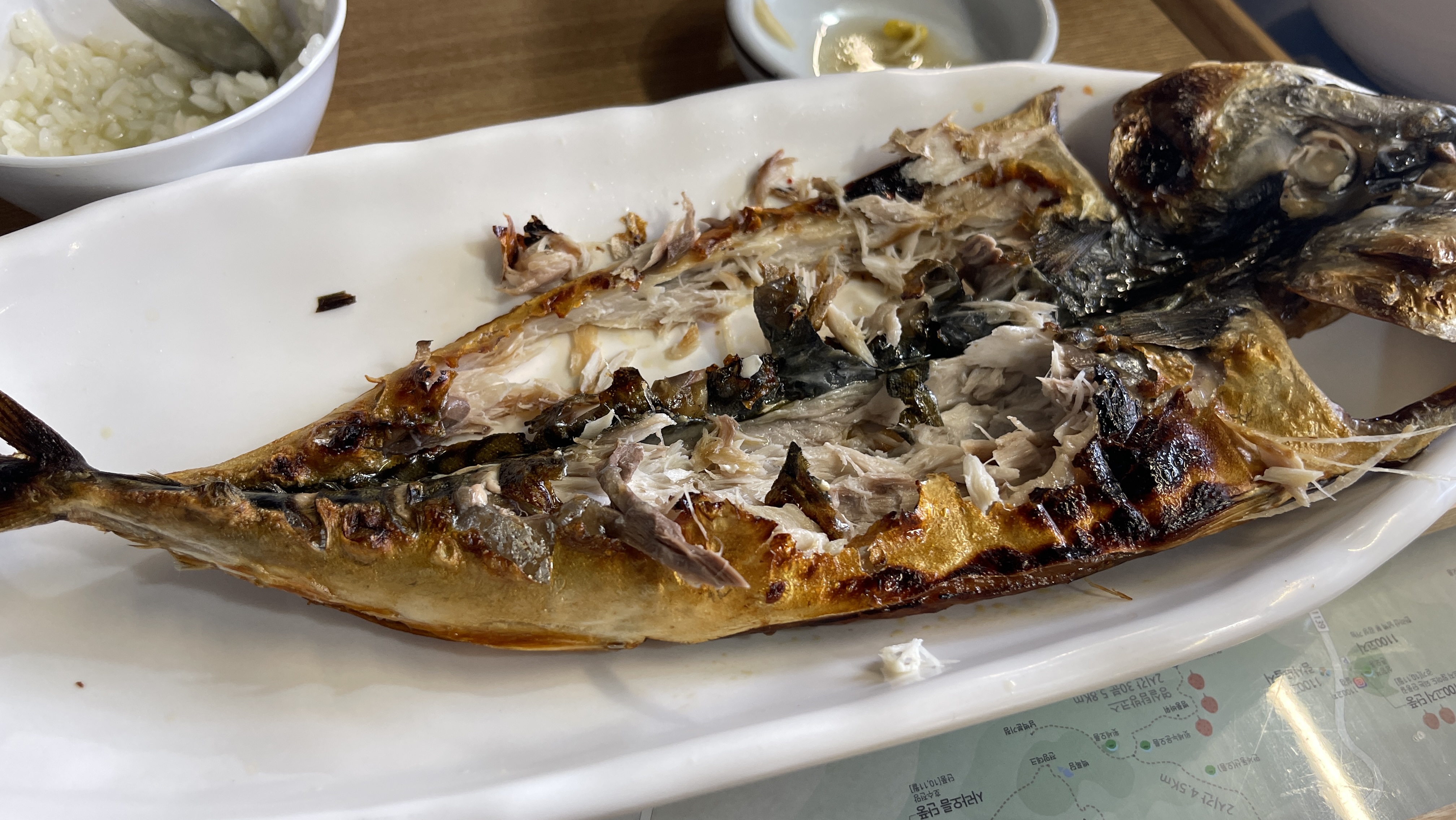 나올 때는 분명 상당히 두툼했던 고등어구이가 어느새 뼈마디를 드러내고, 하얀색 접시의 모습이 나타나기 시작한다. 겉바속촉이라는 말이 딱 어울릴 정도로 겉은 바삭하고 구수한 내음을 품으며 구워졌고, 속안의 살은 아주 촉촉하고 부드러운 풍미다.